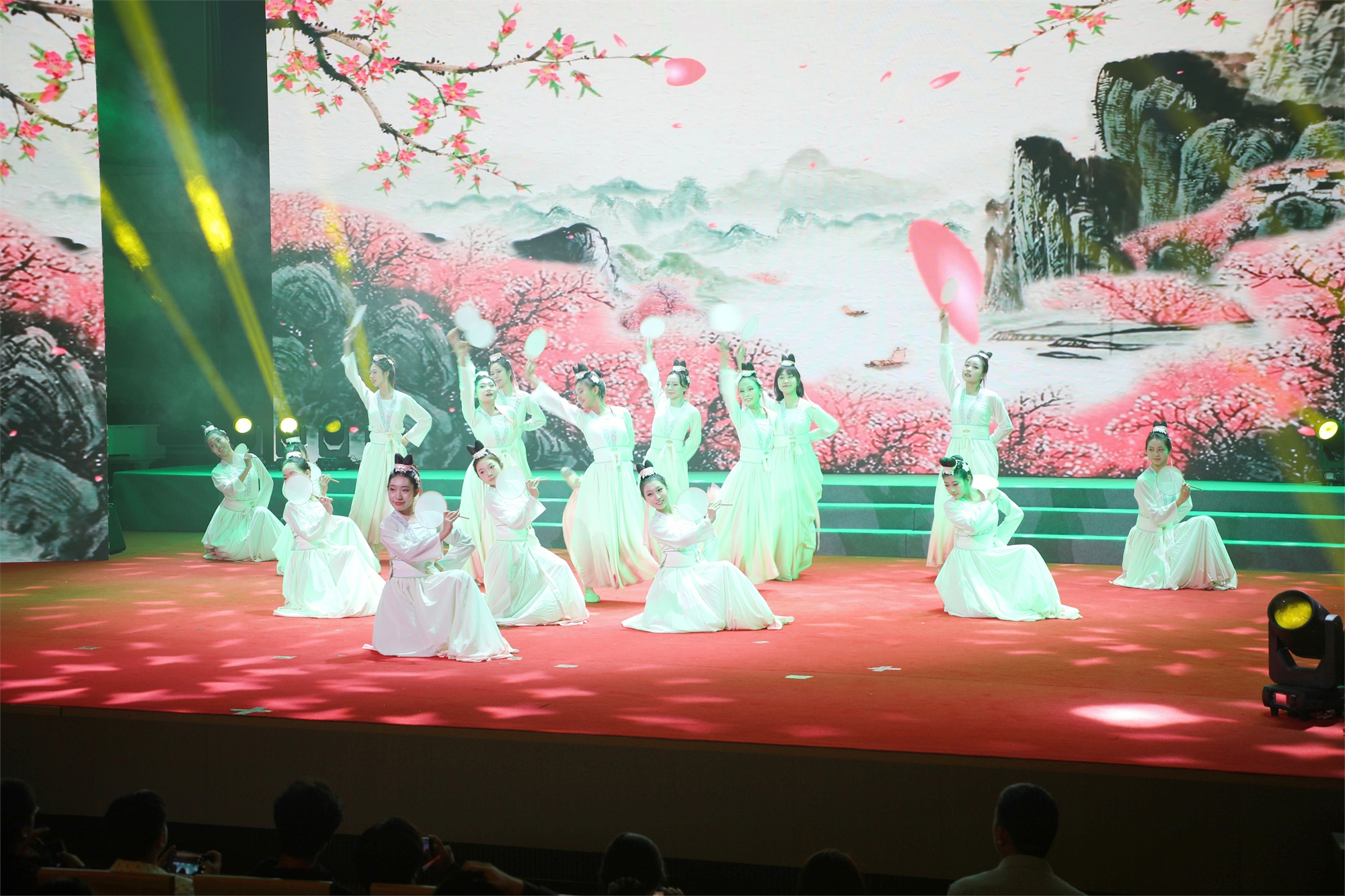 由校大学生艺术团表演的舞蹈《清庭云月》,展现了江南水乡的柔美与诗意,衣袂翩跹间描摹水墨画卷,绿水青山清雅的意境中诠释青春的美好与多彩。