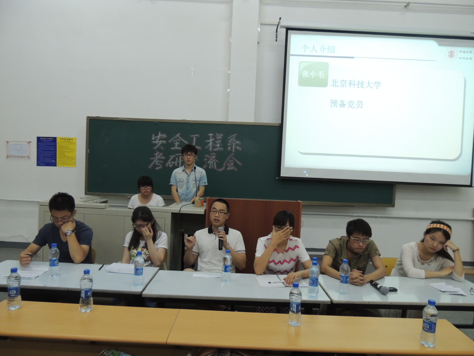 此次交流会邀请到09级的考研、就业成功的毕业生,他们分别为:余金龙(考取中国矿业大学)、谭睿婕(考取首都经济贸易大学)、白颖(考取香港城市大学)、李晓彤(考取北京交通大学)、张伊挺(考取南开大学)、张小毛(考取北京科技大学)、张藕涵(担任山东省选调生)、蔡文正(就职中建二局第四建筑工程有限公司)、刘瑭(担任北京市通州区大学生村官)和仇广德(就职中海油监督监理技术公司)。