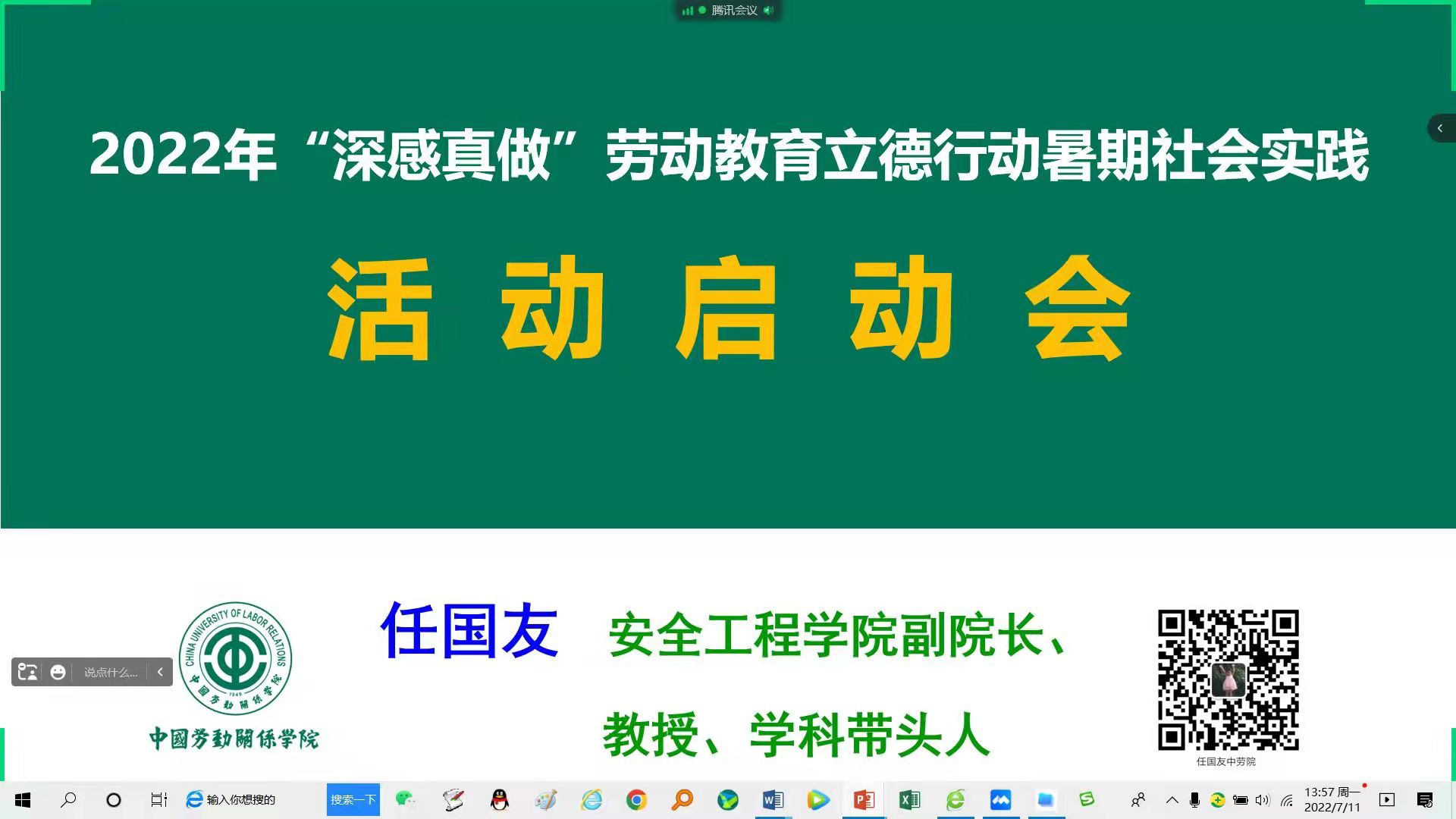 7月11日下午,按照学校团委关于开展2022年“青年服务国家,青春共迎未来”中国劳动关系学院暑期社会实践的通知要求,我院职业风险与劳动素养评价研究所结合疫情防控常态化特点,以线上会议方式,组织开展“深感真做”劳动教育立德行动社会实践活动启动会。