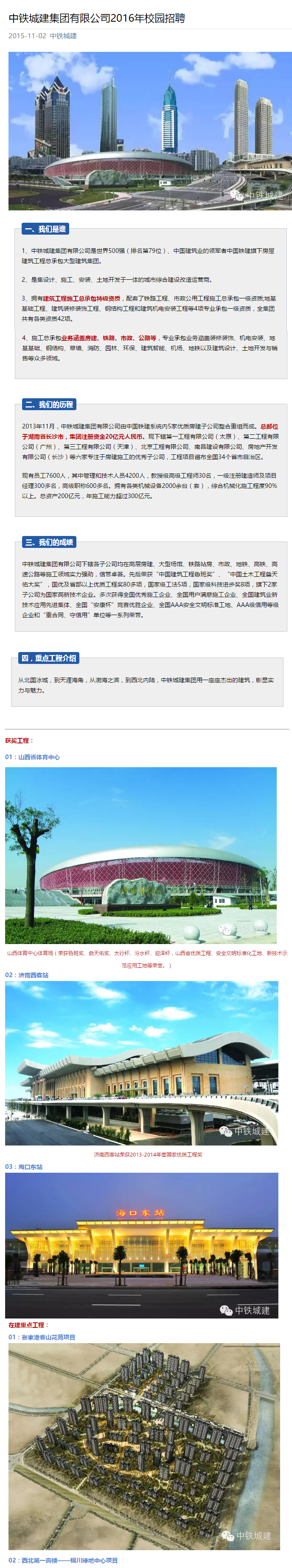 中铁城建集团有限公司2016年校园招聘