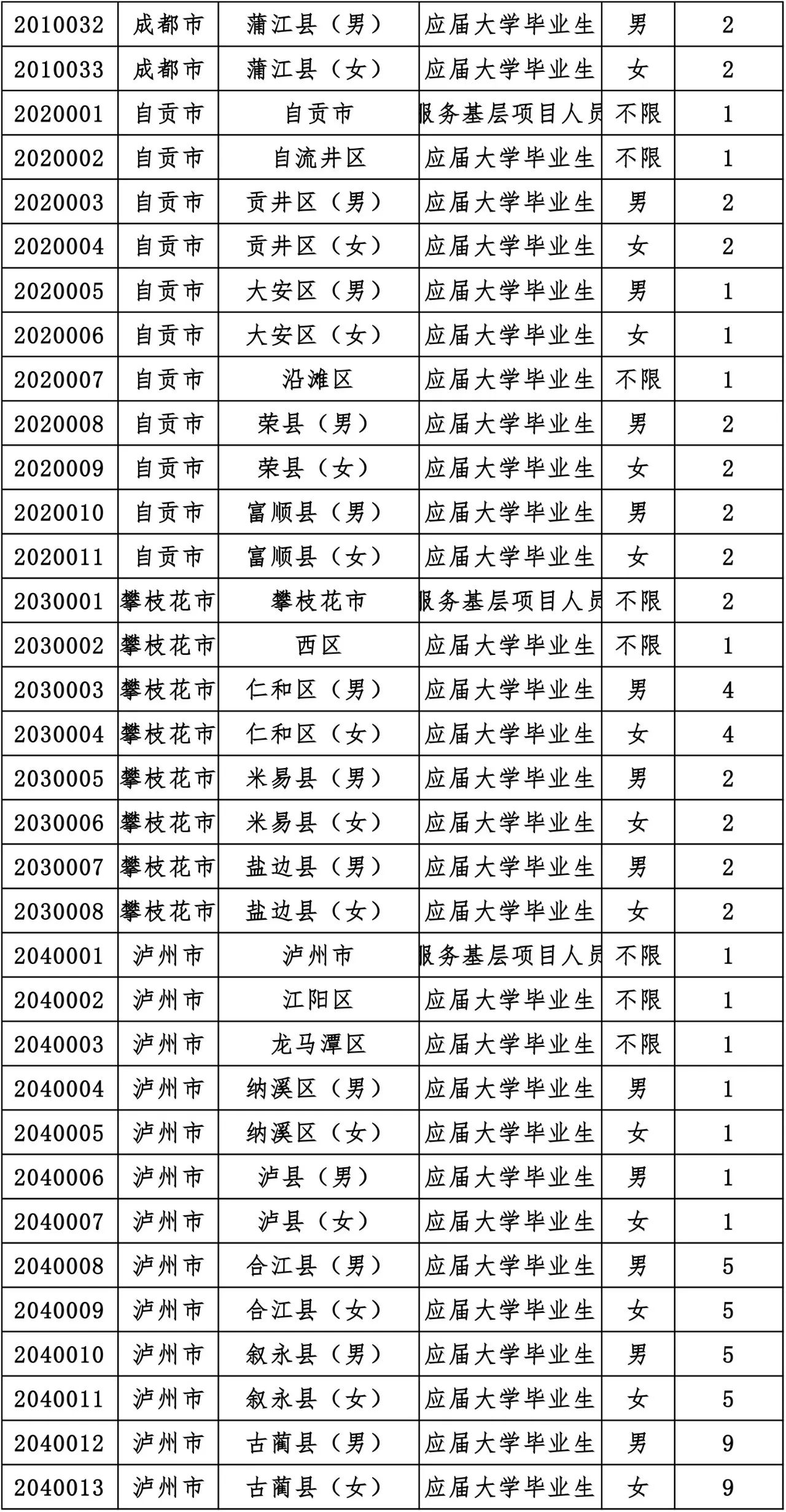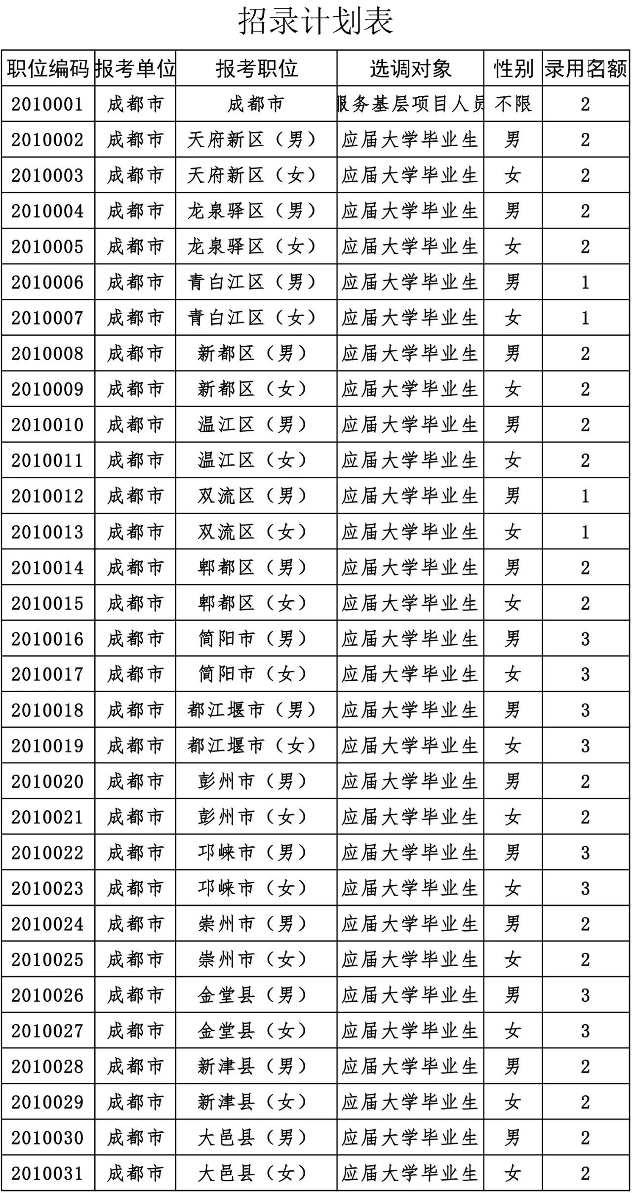 根据四川省产业布局及市(州)经济社会发展急需,确定选调专业。