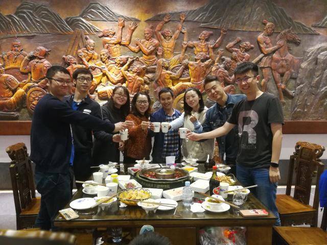 工厂参观结束后,分会成员在重庆著名景点——两江国际影视城游览,并齐聚在影视城内的重庆火锅博物馆(火锅天下宴)共进晚餐。席聚间是分会惯例的行业信息交流高峰,各成员借此契机向组织汇报近期思想动态、工作心得、生活感悟等,分会活动延续了惯有的真挚与朴实。