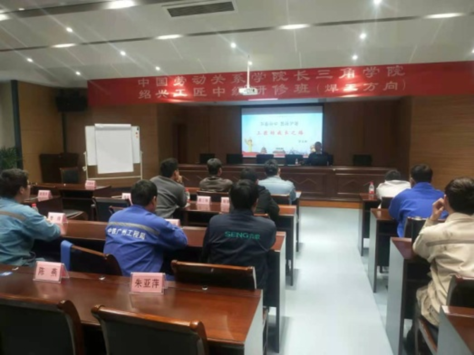 为全面落实《新时代绍兴产业工人队伍建设改革实施意见》,大力弘扬劳模精神、劳动精神、工匠精神,充分发挥劳模工匠队伍的影响力和辐射力, 切实提高我市产业工人技能素质,培育更多新时代绍兴工匠,近日,由绍兴市总工会主办、中国劳动关系学院长三角学院、绍兴市职工中专和柯桥区排水有限公司共同承办的绍兴工匠中级研修班(焊工方向)在丁卫松国家级技能大师工作室焊接实训基地成功举办。