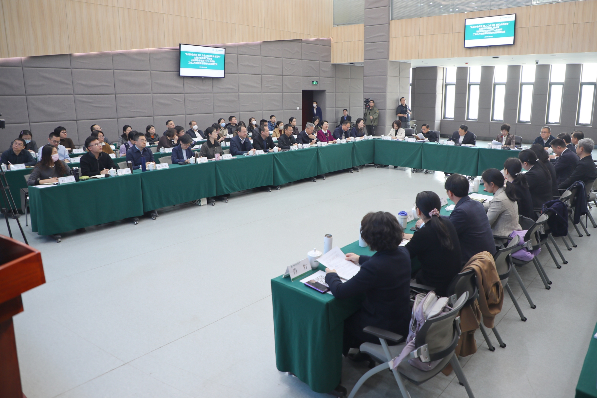 工会学院、科研处、工会干部培训学院和党委宣传部等二级学院、单位分别就工会学学科建设、工会科研智库、工会干部培训和“中国工人大思政课”情况作汇报。