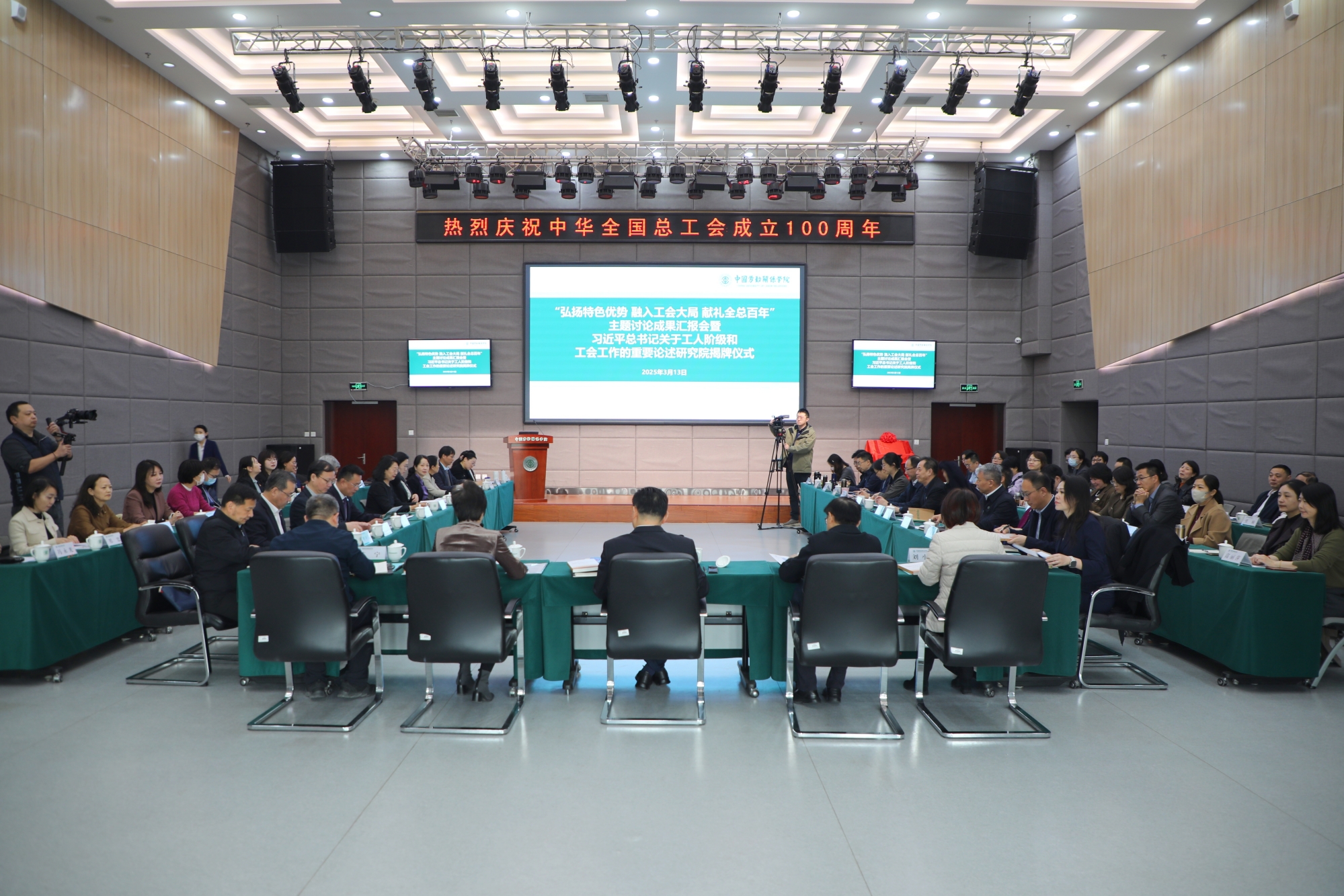 3月13日上午,全总党组书记、副主席、书记处第一书记徐留平来校调研,出席“弘扬特色优势 融入工会大局 献礼全总百年”主题讨论成果汇报会暨习近平总书记关于工人阶级和工会工作的重要论述研究院揭牌仪式并讲话。全总书记处书记、党组成员,组织部部长王娇萍陪同调研并主持会议。