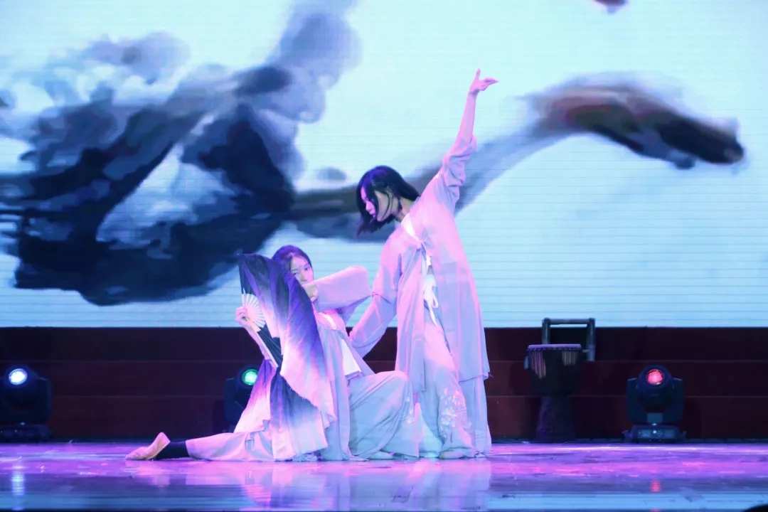 黄艺墨等同学带来的乐器合奏《月半小夜曲》,将小提琴与吉他的弦音、悦耳的钢琴声和架子鼓的鼓点共同融合成舒缓乐曲,声声入耳,经久不散;岳亦珂等同学带来的一曲《青花瓷》,将非洲鼓清晰的鼓点与动人的歌声完美融合,舞者们伴着铮铮的古筝声鸣与悦耳的钢琴曲翩翩起舞。