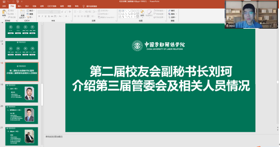 紧接着,第二届校友会副秘书长兼轮值会长徐小强介绍本次换届情况及候任人员。介绍了校友会建设框架,目前我院年级理事覆盖1990-2018级及各地的分会理事,涵盖了包括法学和非法学各领域。第二届校友会副秘书长刘珂介绍第三届管委会相关人员情况。