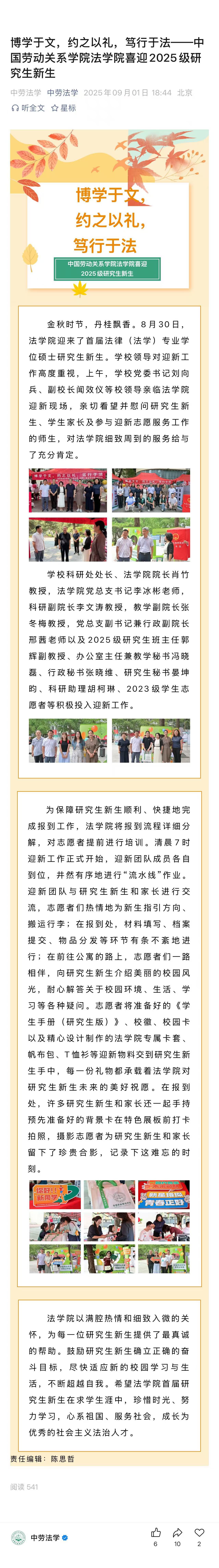 博学于文,约之以礼,笃行于法——中国劳动关系学院法学院喜迎2025级研究生新生