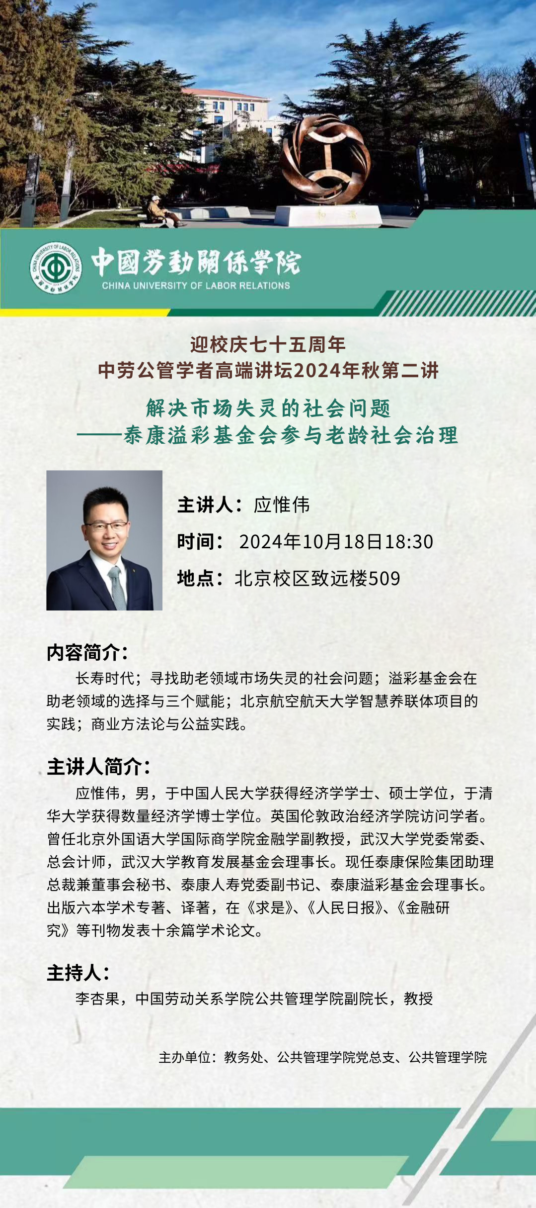讲座预告 | 应惟伟谈解决市场失灵的社会问题——泰康溢彩基金会参与老龄社会治理