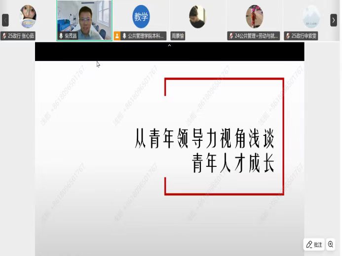 11月20日晚,我院特邀北京语言大学副教授、国家经济技术职称考试人力资源管理专业命题组成员、中国人民大学管理学博士柴茂昌,开展“从青年领导力视角浅谈青年人才成长”主题讲座。本次讲座由公共管理学院李蹊老师主持,吸引众多师生线上参与。