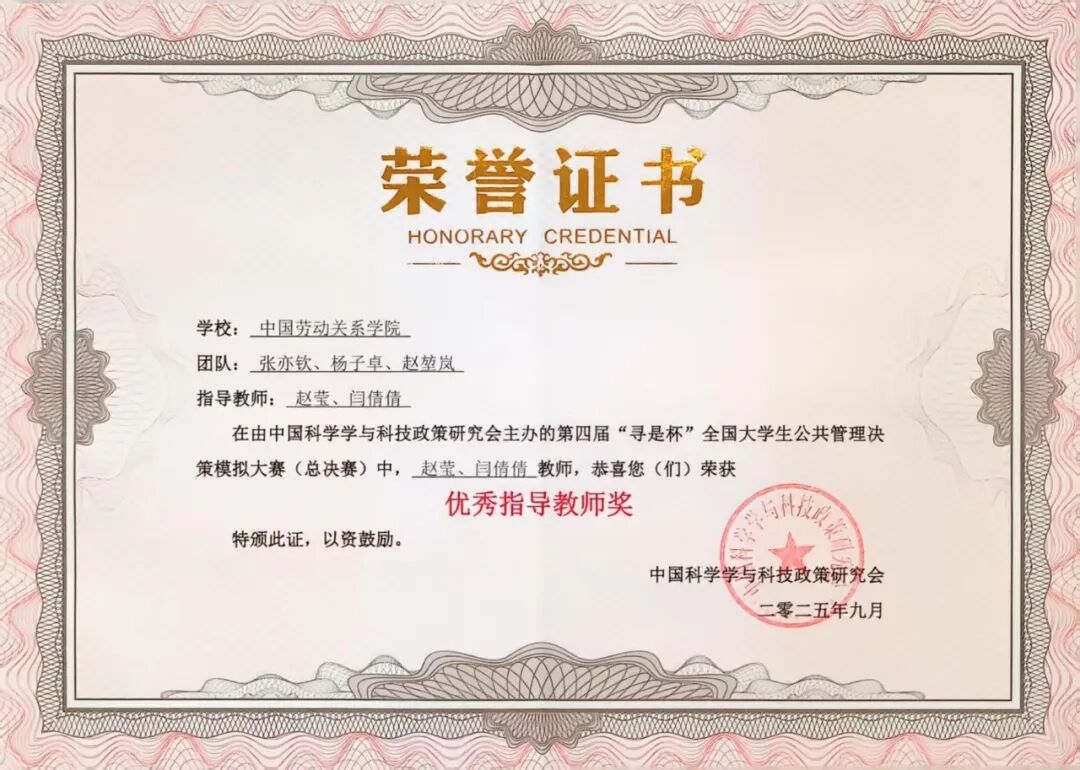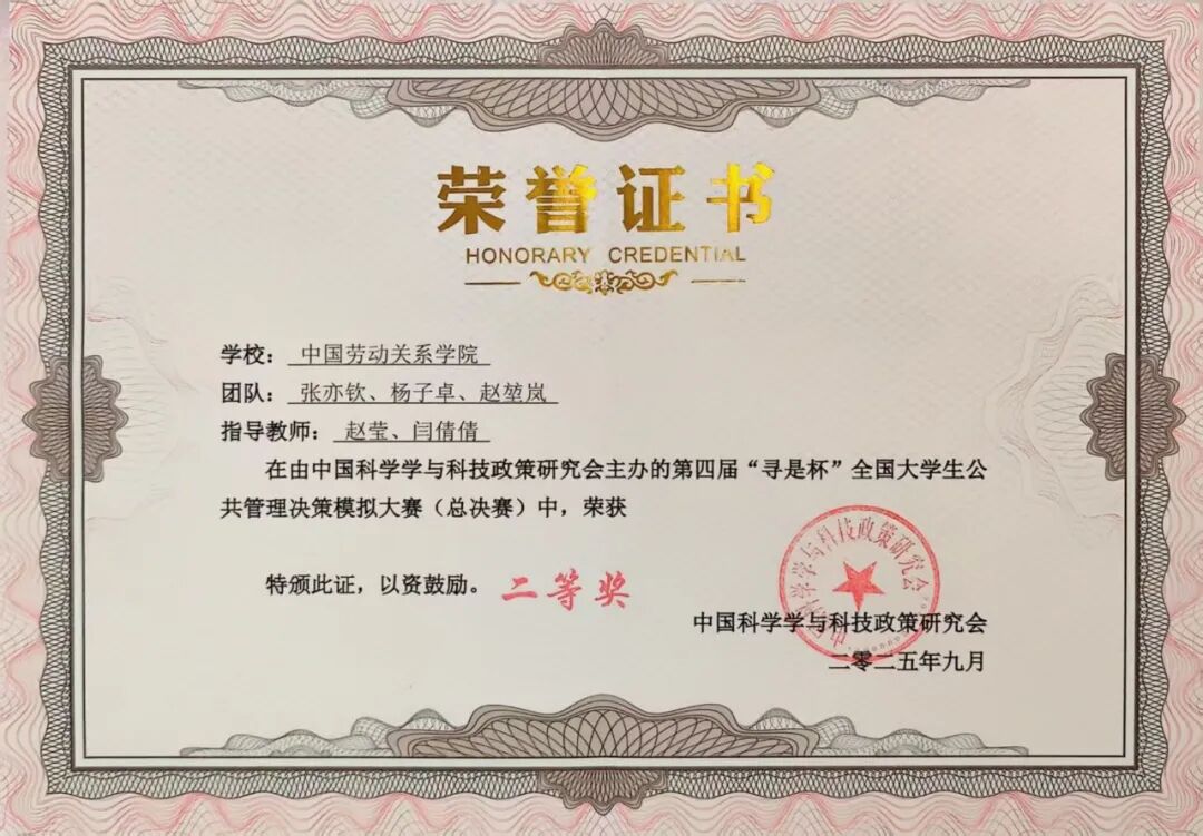 经过区域赛的激烈角逐,来自全国99所高校的500多名师生齐聚于此,各展其才。由我院党总支书记赵莹和行政管理系闫倩倩老师指导,2022级张亦钦、杨子卓、赵堃岚三位同学组成的“闻道致远”队,经过与北京大学、中国人民大学、西安交通大学等100支高校队伍激烈角逐,最终荣获大赛(总决赛)二等奖,两位指导老师获评“优秀指导教师”。
