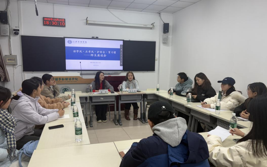 最后,赵莹倡导大家做学风建设的带头人、诚信安全的宣讲员、师生沟通的代言人,切实发挥桥梁纽带作用,及时传递同学诉求、反馈学院声音。本次座谈会有效畅通了学院与学生的沟通渠道,精准把握学生的实际需求与思想动态,为学院后续针对性解决问题、落实学生建议提供了重要依据,有力营造了共商、共建、共享的和谐育人氛围。学院将以此次座谈会为契机,进一步加强与学生的常态化沟通交流,持续推进学风班风考风建设,全力打造平安校园,共同筑牢安全防线。