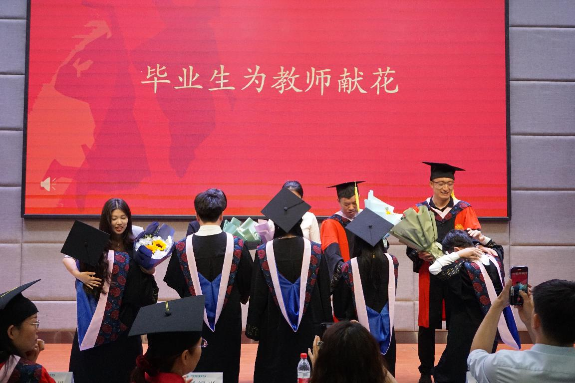 饮其流者怀其源,学其成者念吾师。以花传情,承载桃李之恩,以花为礼,敬献灼灼恩师。在感念师恩仪式上,学生代表们为陪伴四年的教师代表、毕业班班主任、辅导员老师、教学秘书老师鞠躬、献花。这一刻,感恩之情、不舍之意,都化为一个深深的拥抱,一句句深情的感谢……