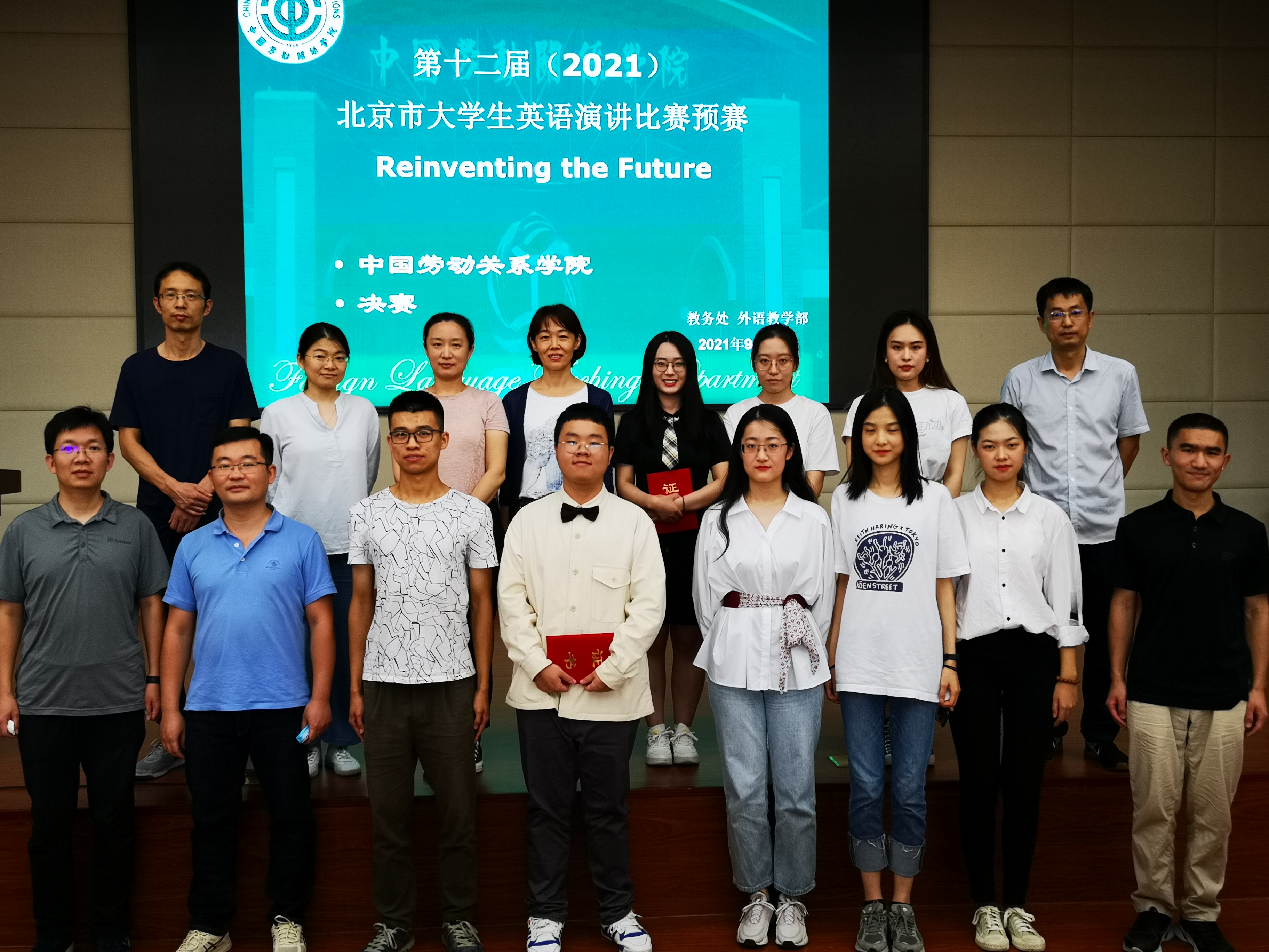 为了选拔参加2021年第十二届北京市大学生英语演讲比赛的同学,我院在2021年9月10日下午,由教务处和外语教学部共同组织了“第十二届(2021)北京市大学生英语演讲比赛”中国劳动关系学院赛区选拔赛决赛,比赛地点为在北京校区致远楼908教室,共有来自不同院系的15名同学参加了本次决赛选拔。在此之前,采用线上宣传、学生微信群宣传、QQ群宣传和地面宣传,其中地面宣传包括通知各系部辅导员组织学生报名,在校园各显著位置张贴海报。