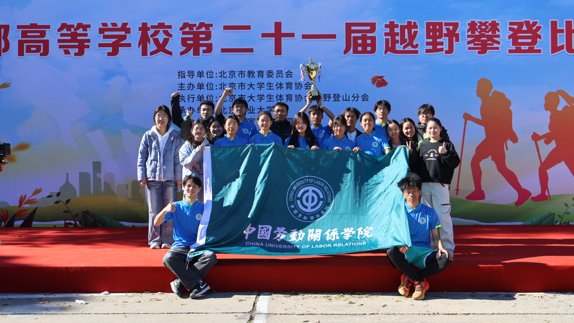 2025年11月1号,首都高等学校第二十一届“鹫峰杯”越野攀登赛如期举办,中国劳动关系学院越野攀登队以1小时3分2 秒的优秀成绩拿下乙组冠军奖杯,这也意味着我校越野攀登队在该项赛事中取得十四连冠。