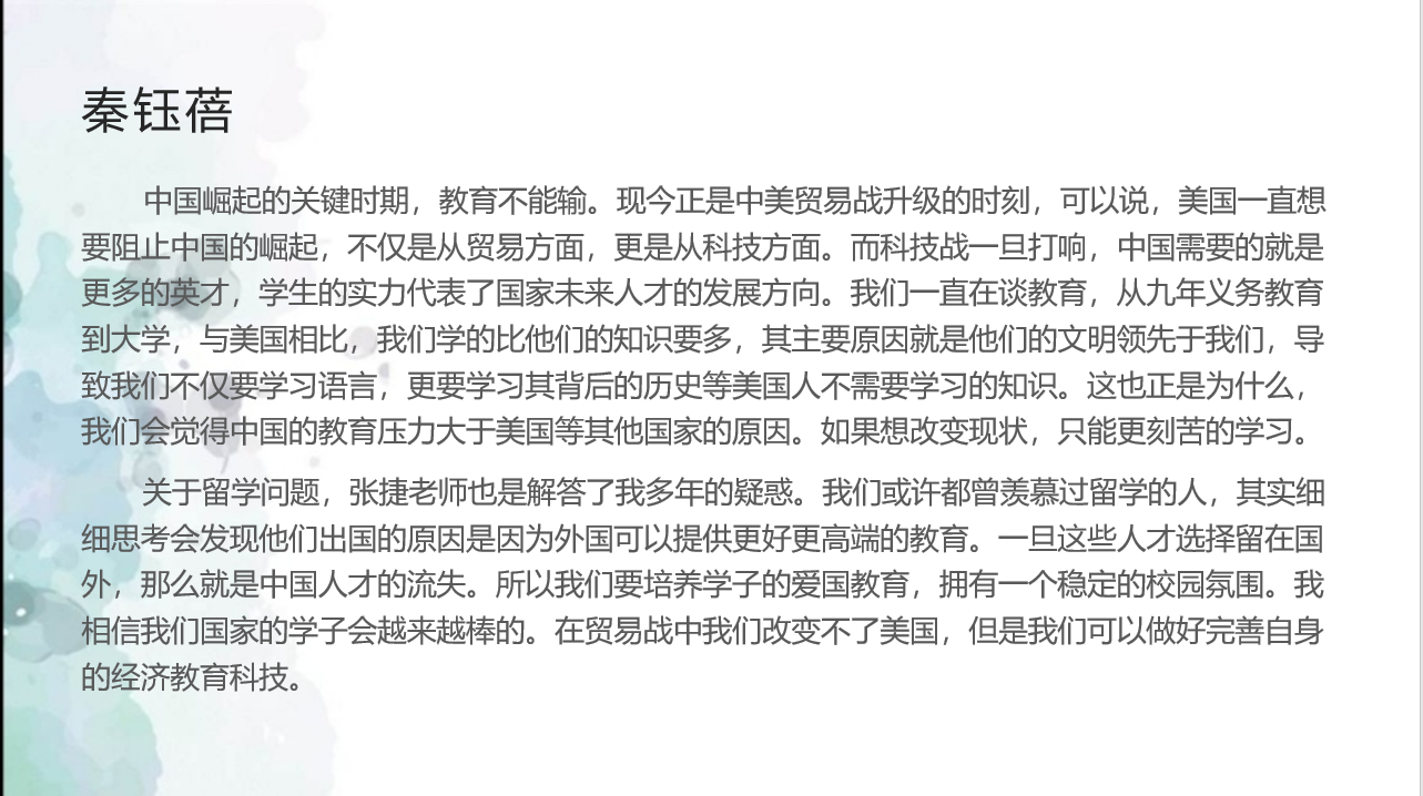 讲座中,张捷教授以中美贸易战为背景,以中美教育发展为切入点,结合时代要求、教育现状和人才培养三方面,剖析了普及教育与英才教育的关系,深刻阐述了教育在国际竞争中扮演的重要角色,表达了中国崛起需要培养中国人才的观点。