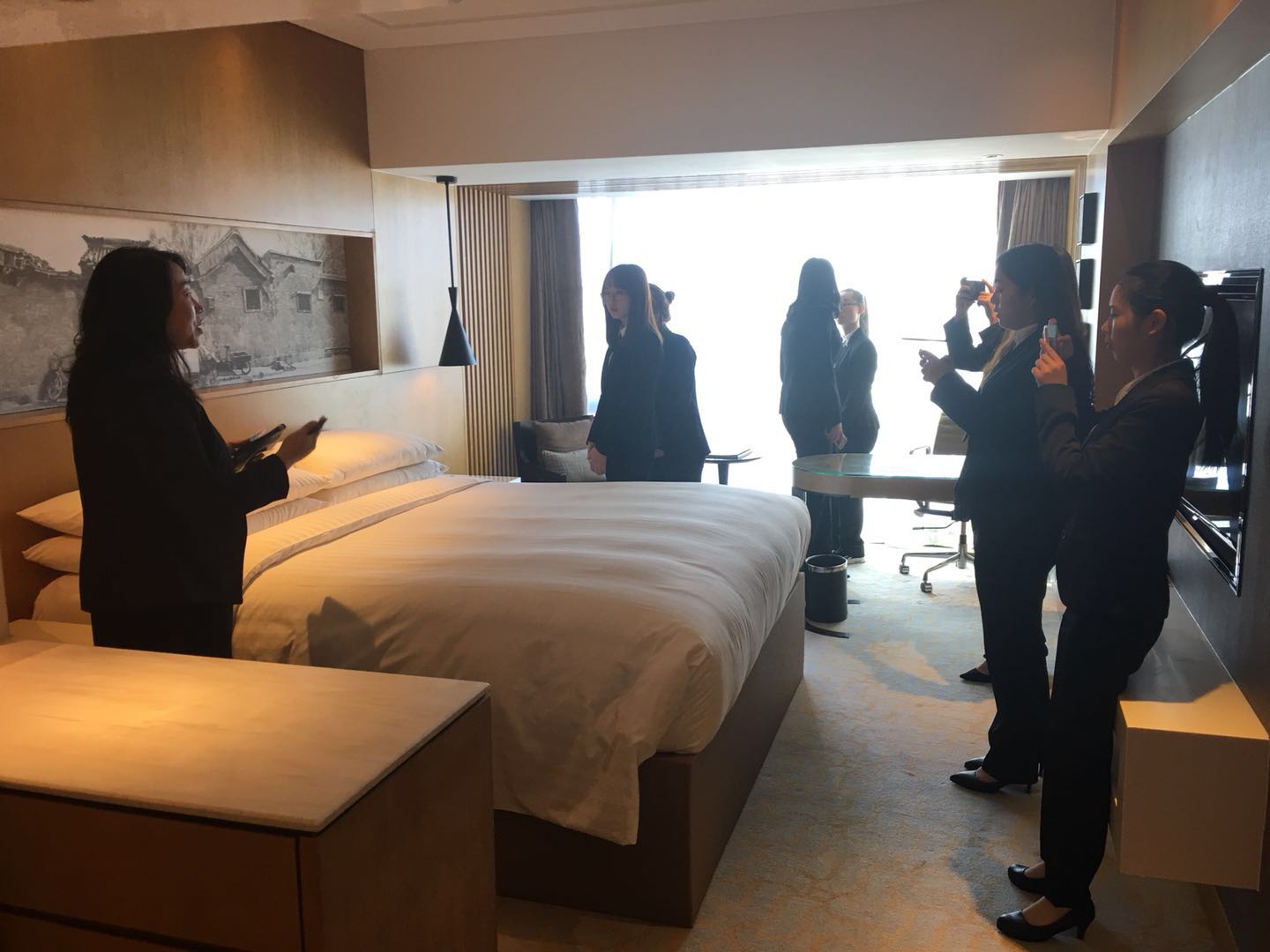 Rosy Wei带领我院师生参观了酒店各类餐厅、客房、健身房等部门。参观的学生都感受到,只有经过亲身体验才真正体会到酒店管理的必要性。总经理龙麦克先生给学生们分享他的个人职业生涯经历,并希望同学们通过学院和酒店的交叉式教学体系,真正学有所得、学有所成。财务总监杜文婷小姐通过分享她这几年在酒店业的亲身经历,鼓励大家培养吃苦耐劳的精神和开拓创新的思维,也热烈欢迎大家加入万豪酒店的管理团队。