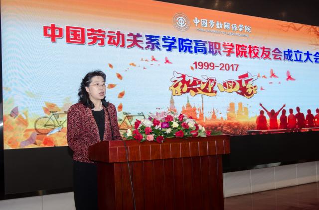 刘丽红副校长在致辞中对高职学院校友会的成立表示热烈祝贺。她指出,从1999年到2017年,高职学院从最开始的数十位学生到今天约2000人的规模,从筚路蓝缕到打造出中劳品牌,这是全体高职教师、所有校友共同努力的结果;校友是母校的名片,是母校最宝贵的财富和资源,是母校事业发展最可信赖的力量;母校是校友远航归来的港湾和精神寄托的家园;校友会是凝聚校友、共创未来的坚强纽带,将为母校和校友之间的交流合作提供强有力的支撑和组织保障,她希望与会的校友们能够把母校的喜悦和祝福带给天涯海角的每一位校友。