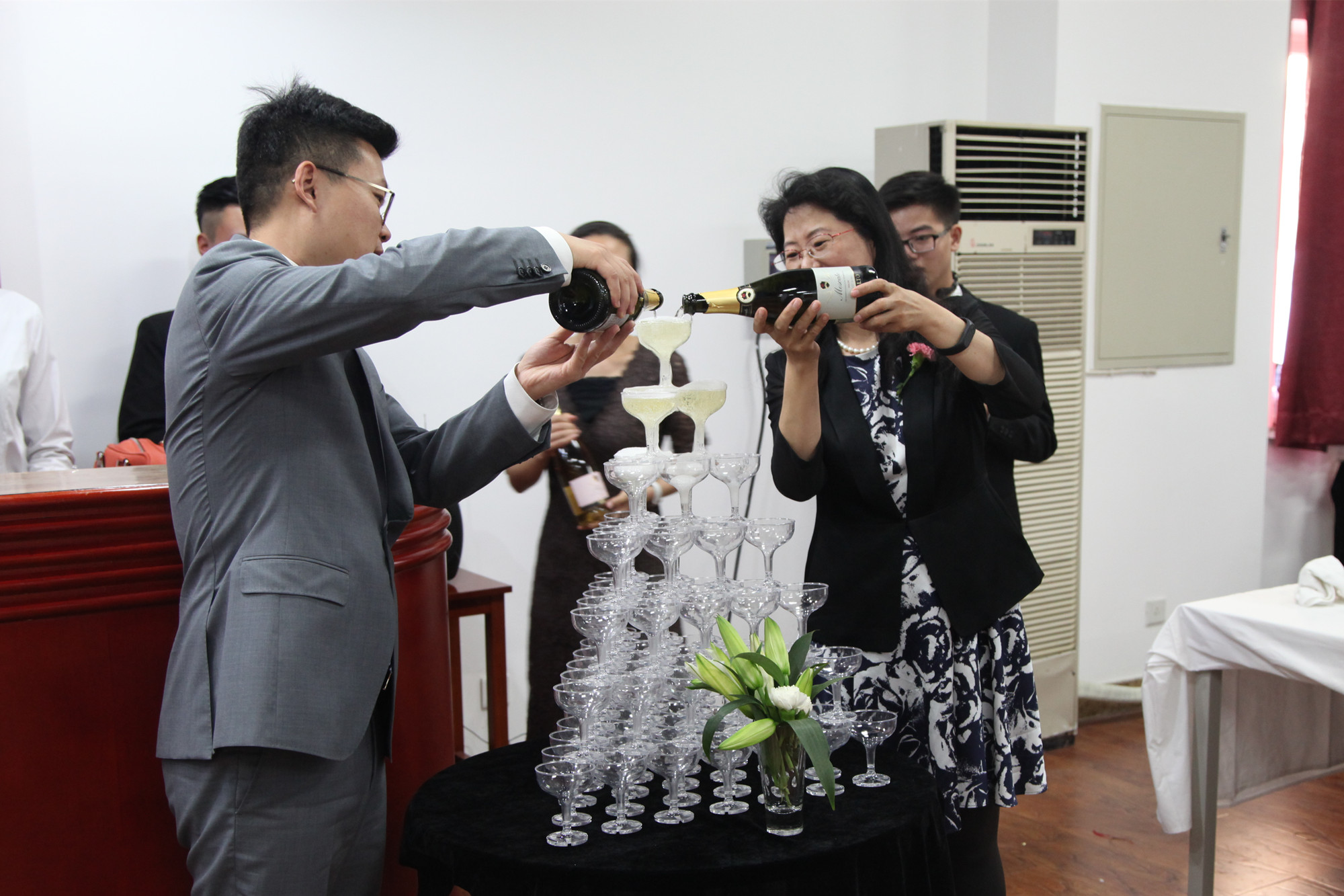 刘丽红副校长和北京香格里拉酒店人力总监赵立先生共同斟倒香槟塔后,汇报会的酒水和餐饮服务综合展示环节正式开始。评委和嘉宾依次品鉴了学生调制的各种鸡尾酒、来自“希腊-爱琴海”地区的葡萄酒,以及由餐饮专业卫强大师带领学生制作的精美餐品,并对服务内容、菜肴质量及整体气氛设计进行打分和评点。