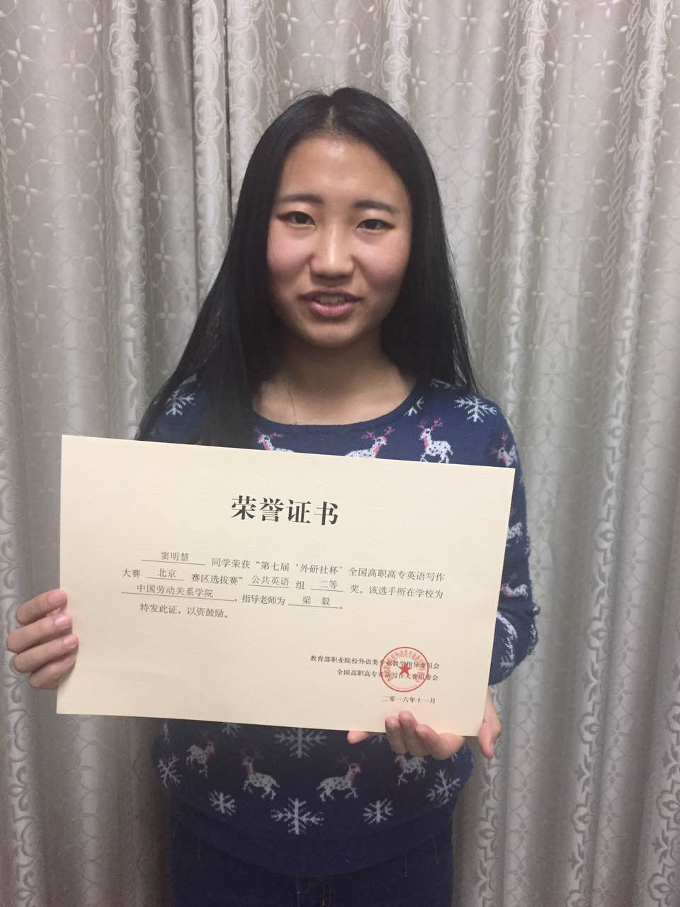 我院学生荣获“外研社杯”高职高专英语写作大赛复赛二等奖