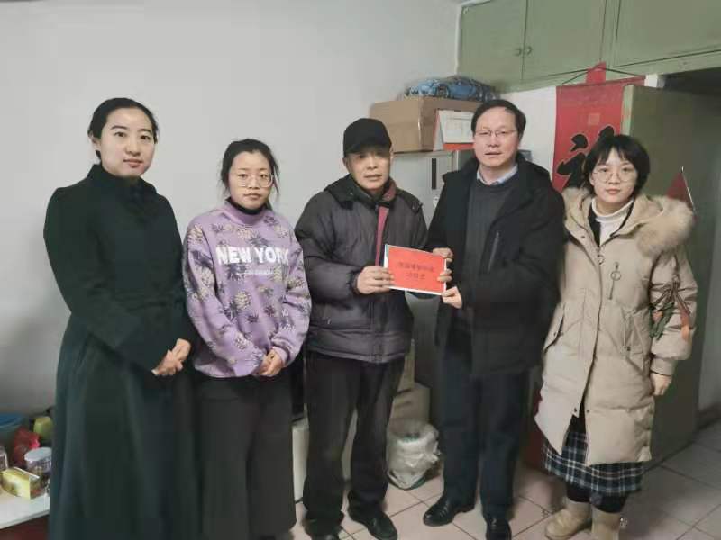1月15日,吴万雄副校长来到酒店管理学院王秋凤同学家走访慰问,仔细询问家庭生活状况,了解他的成长经历,家庭收入,介绍学校的资助政策,并代表学校向王秋风同学家庭送上慰问金和慰问品,勉励他克服困难,认真学习,不辜负家人和老师的期望。希望她毕业后能够学有所成,将自己的知识和技能发挥出来,为自己家庭、也为社会贡献自己的力量。