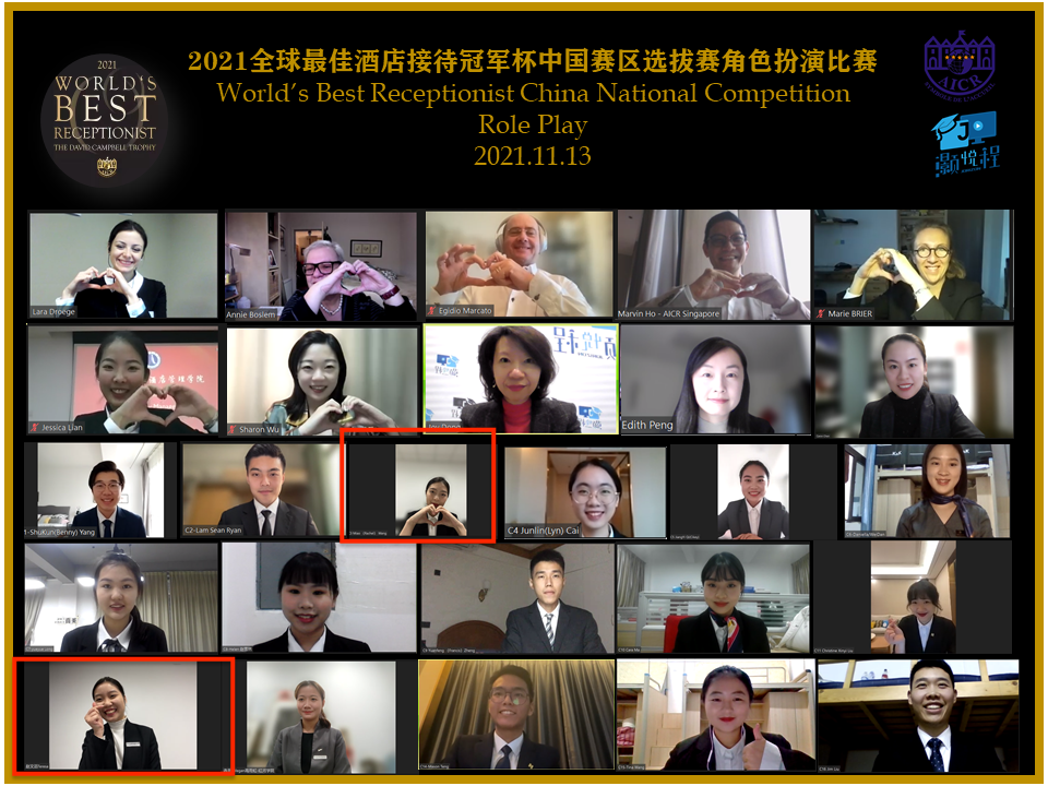 此次的全球最佳酒店接待冠军杯中国赛区选拔赛不仅为参赛选手提供了一个交流和学习的平台,更是为参赛选手们搭建了一座和酒店前厅经理人国际联盟(AICR)之间的桥梁,拓展了同学们的国际视野,更拓宽了同学们对于酒店行业的认识与了解。期待两位同学在加入到了AICR联盟的大家庭中之后能有进一步的学习和成长。
