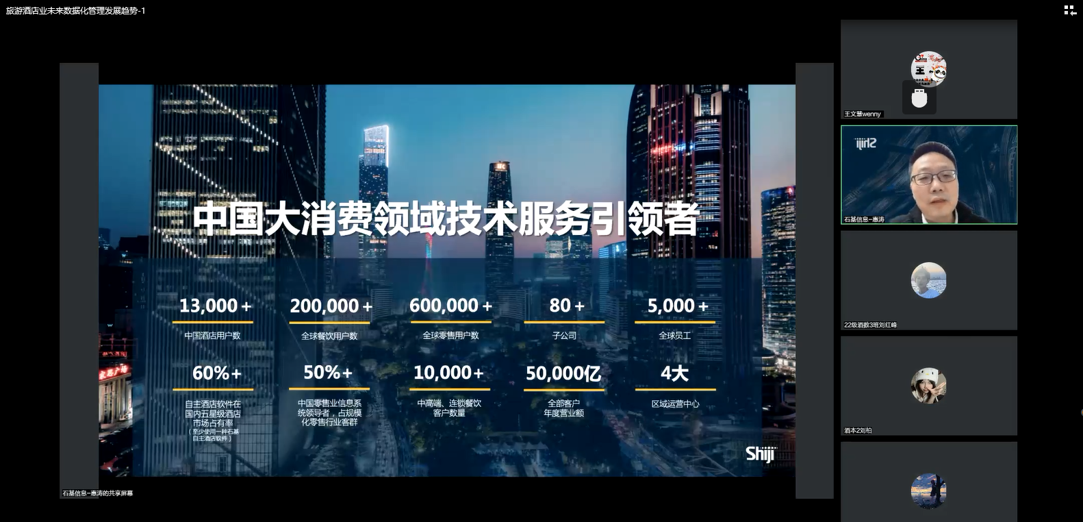 2022年12月5日,我院邀请石基信息大中华区销售及市场副总裁惠涛先生为同学们开展了主题为“旅游酒店业未来数据化管理发展趋势与前景展望”的讲座,本次讲座由学院副院长王文慧老师主持。