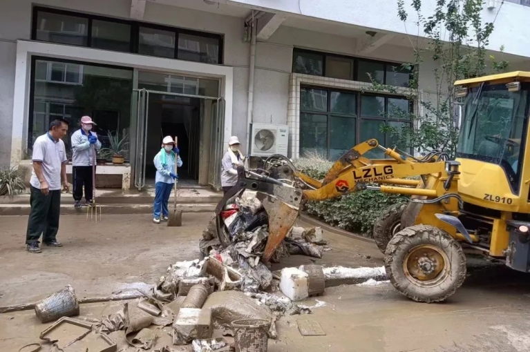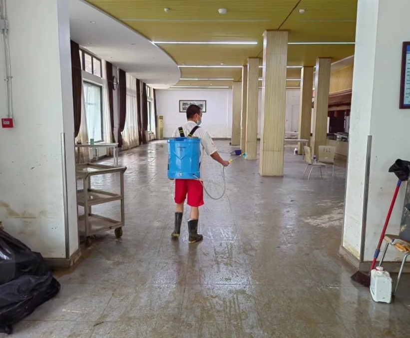 8月2日,涿州校区内水位逐渐退去。校园内遍地淤泥,后勤处争分夺秒抢修,抓紧修复校园通讯、电力、水力等受损基础设施,清除路面积水、冲洗楼宇内及路面淤泥,清理残枝落叶、扶正风雨中倾斜的树木。目前涿州校区已恢复全面供水,家属区部分楼宇恢复基本供电,校园正在深度清淤中。