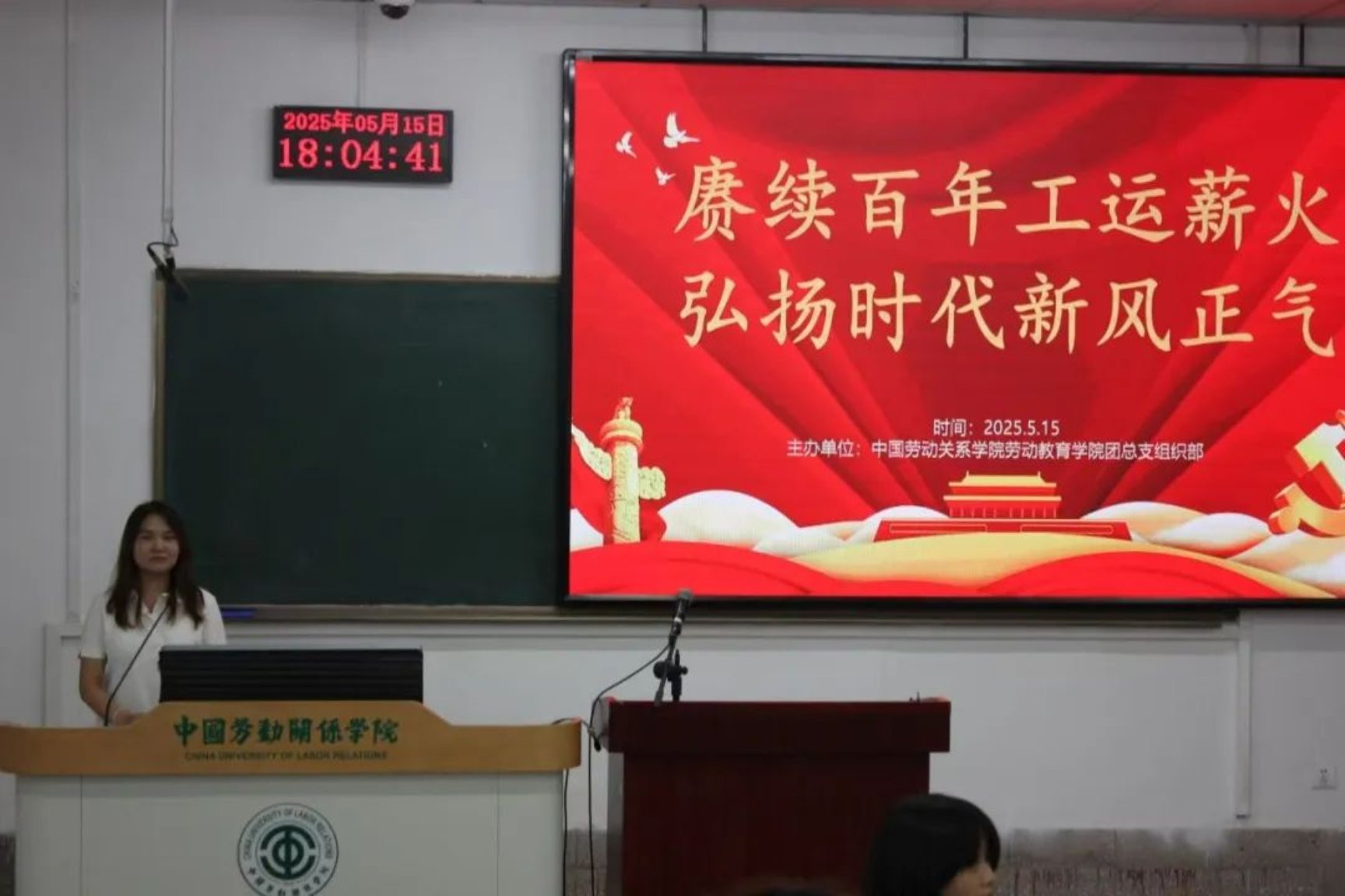 5月15日,中国劳动关系学院劳动教育学院团总支组织部在阶梯教室六举办了“赓续百年工运薪火,弘扬时代新风正气”主题团课。本次团课由24级劳育班组织委员穆思瑶担任主讲人,23、24级团员共同参与,旨在深入学习贯彻习近平总书记在庆祝中华全国总工会成立100周年暨全国劳动模范和先进工作者表彰大会上的重要讲话精神,传承工会精神,激励青年团员担当时代使命。