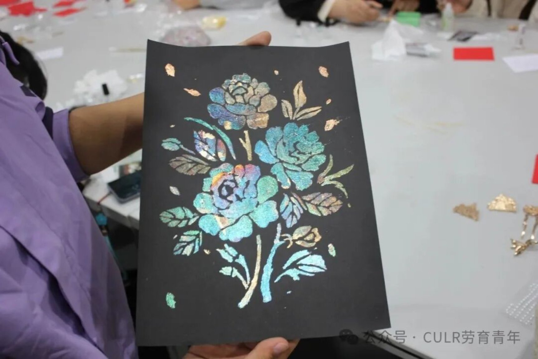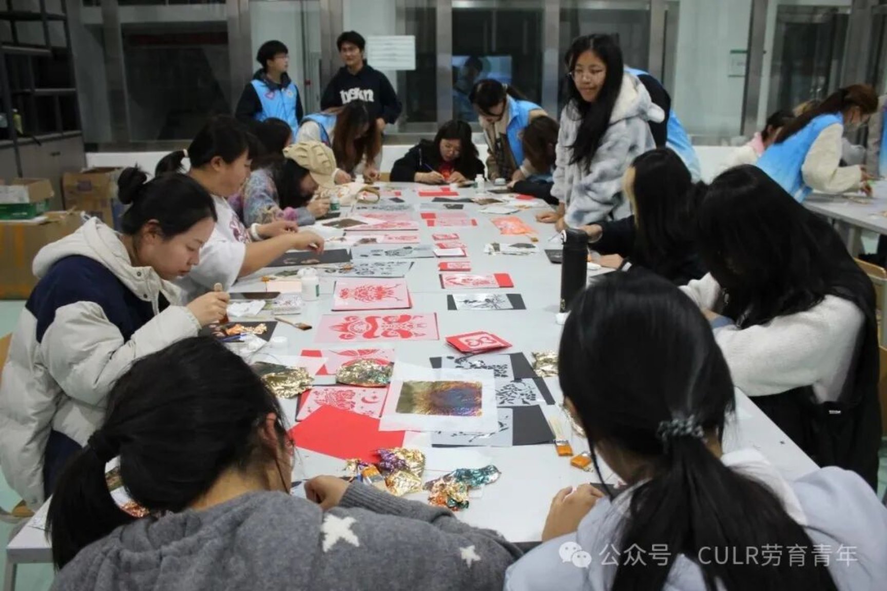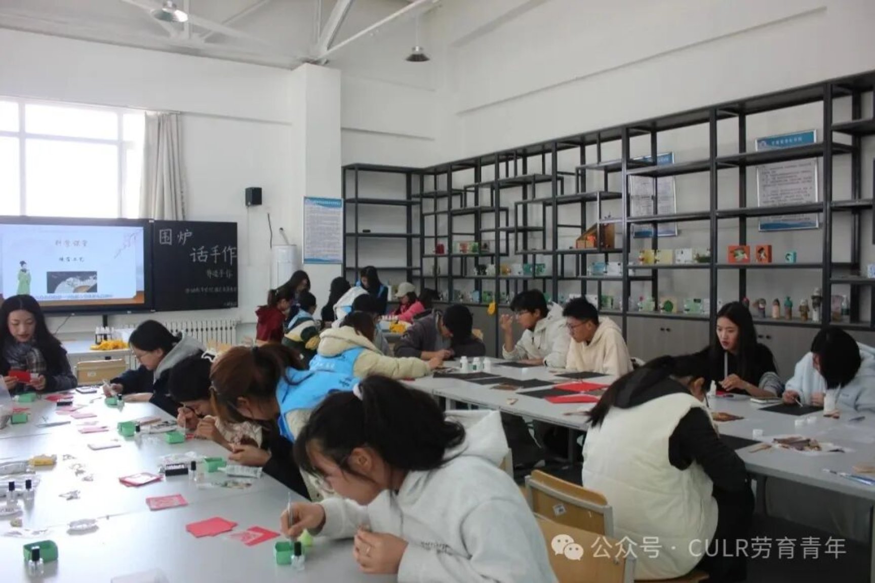 立足劳动教育特色,面向涿州校区开展“窗外风雪夜,围炉话手作”非遗手作体验活动:设置扎染、螺钿、烧箔画三大体验区,志愿者提前完成技能培训,用讲解和实操的方式带领团员沉浸式体验传统技艺;从烧箔画铜箔烫制、螺钿贝壳镶嵌到扎染图案创作,团员在动手实践中感受非遗魅力,同时结合专业知识普及文化传承价值,激发对传统文化的热爱与保护意识