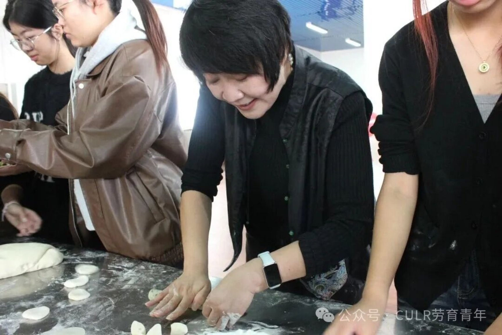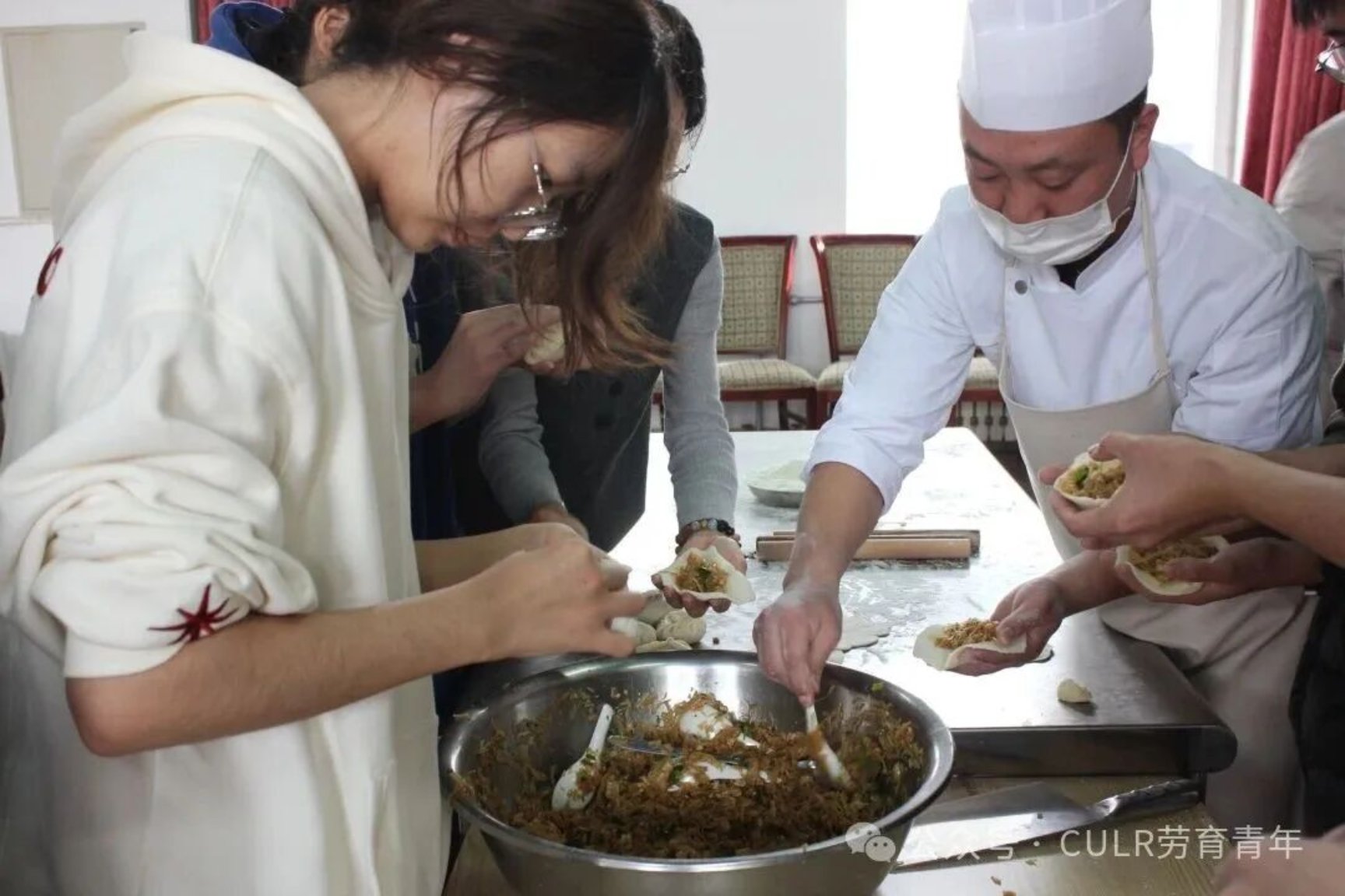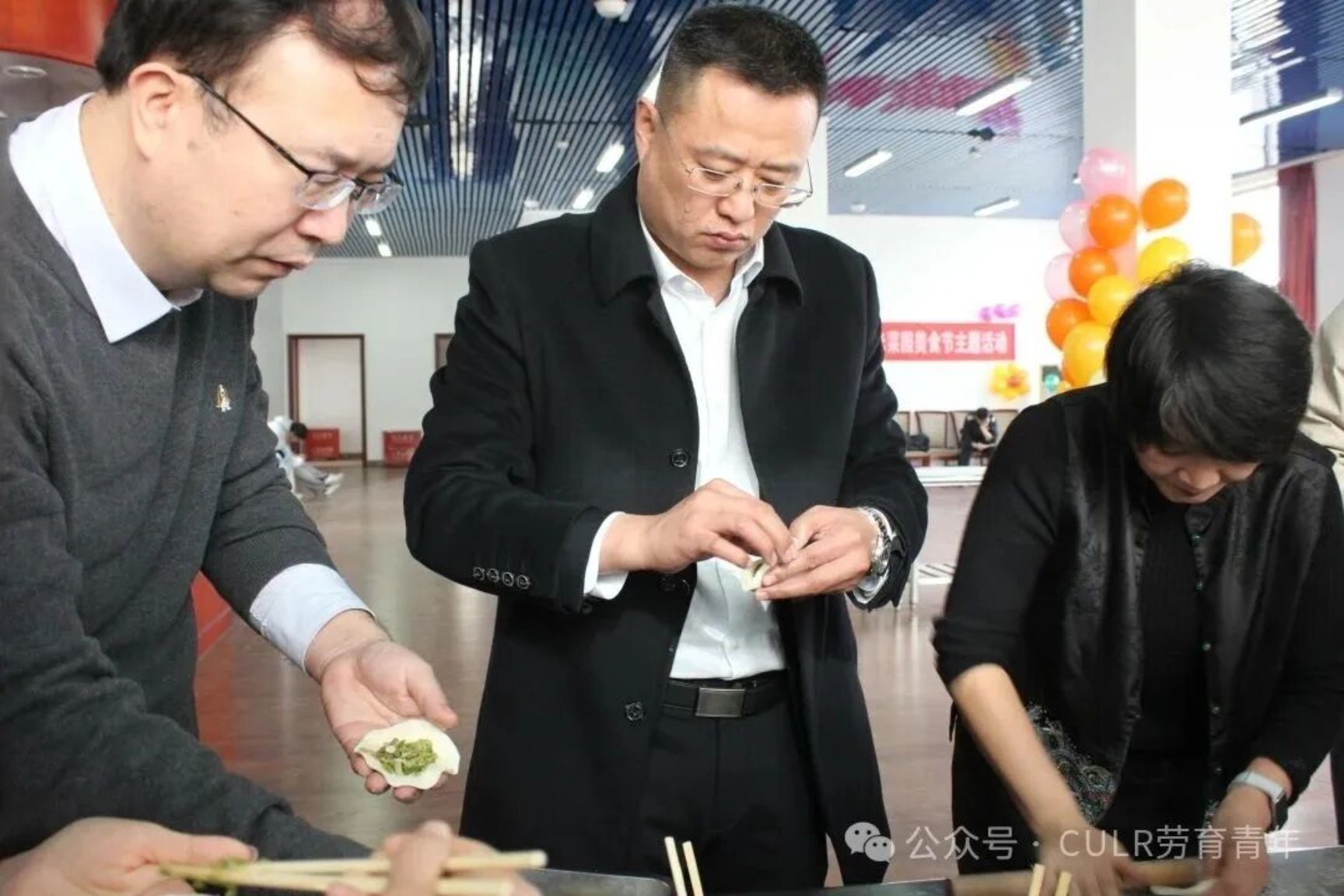 11月30日上午,在涿州校区教工餐厅,师生们通力合作,进行食材清洗、备馅、和面等准备工作,将采收的白菜、萝卜加工成包子、饺子、羹汤等美味佳肴。李珂与师生们共同品尝亲手制作的美食,共享劳动成果。他充分肯定了同学们在耕读小院管养中展现出的劳动精神,并希望劳动教育学院与后勤管理处持续深化合作,进一步加强活动的教育性设计,将其打造为既服务于劳动教育专业人才培养,又面向全校学生的劳动教育实践教学品牌。