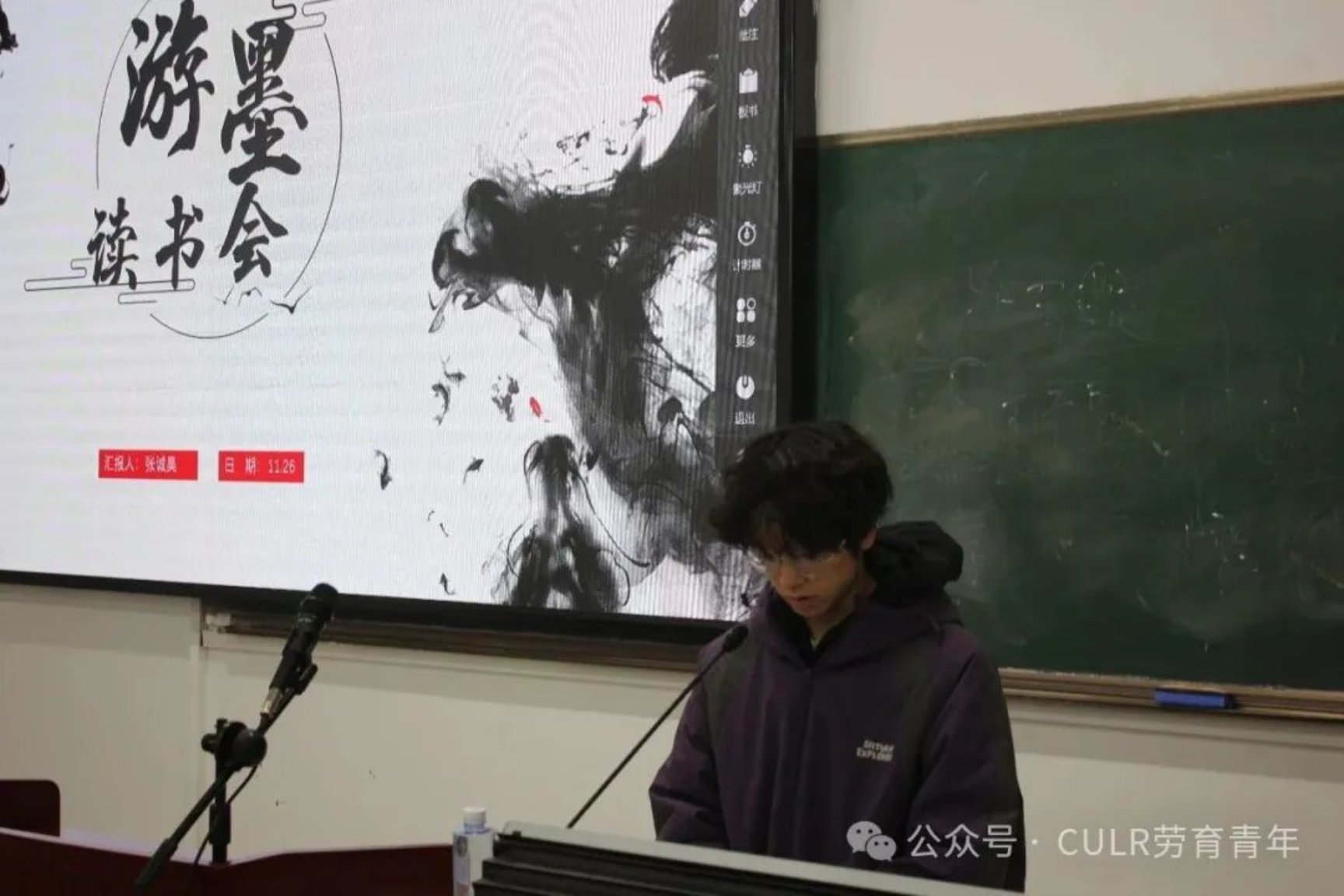 11月26日,劳动教育学院在阶梯教室五举办第三次“游墨读书会”。本次活动由25级张诚昊同学主持,全体24级、25级同学参加。
