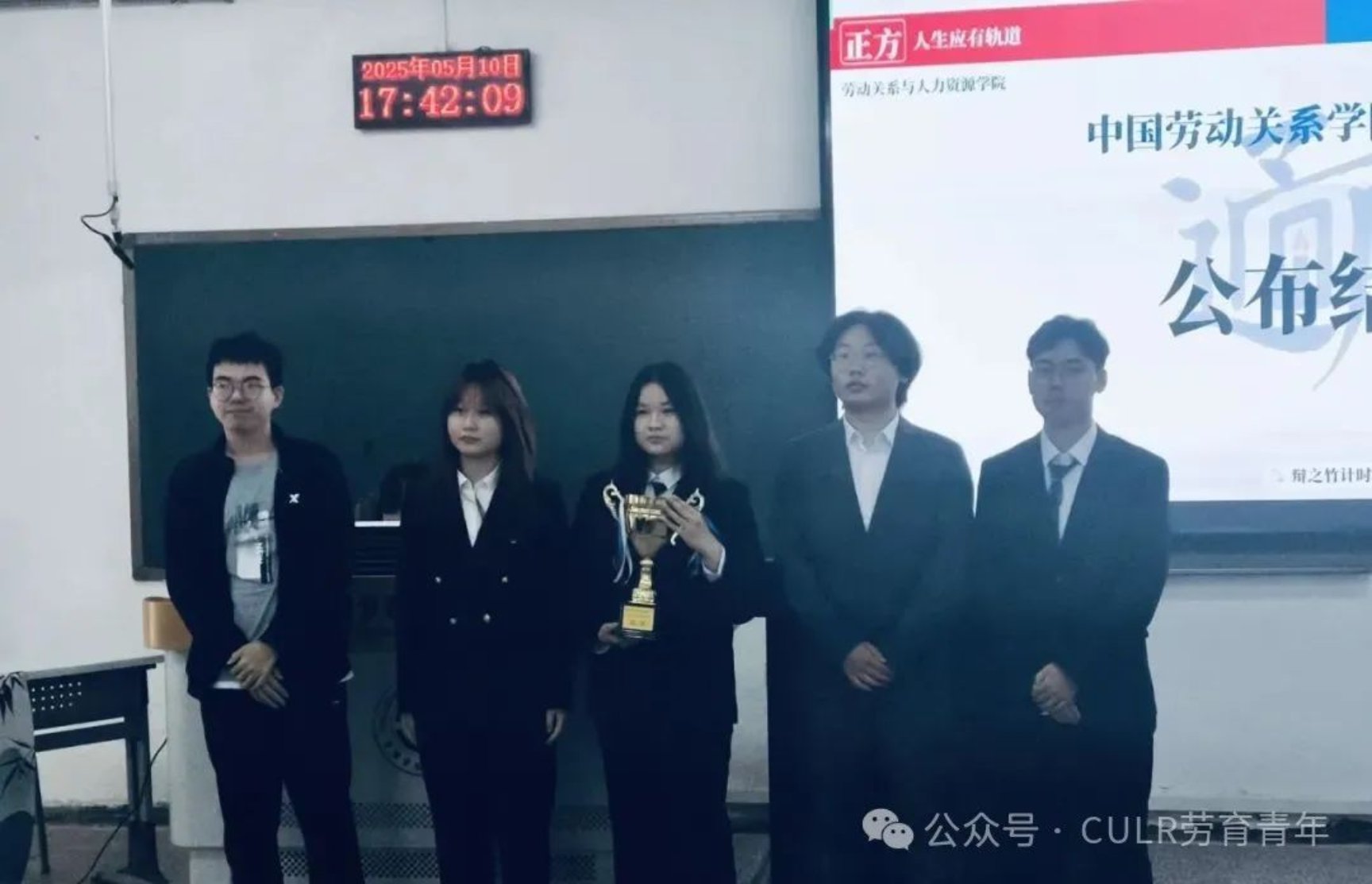 经过现场三位评委的综合打分,结合投票结果,最终劳动关系与人力资源学院代表队以2:1的比分获胜,劳动教育学院代表队荣获本届赛事亚军。反方二辩朱倩同学以其出色的表现荣获“最佳辩手”称号。