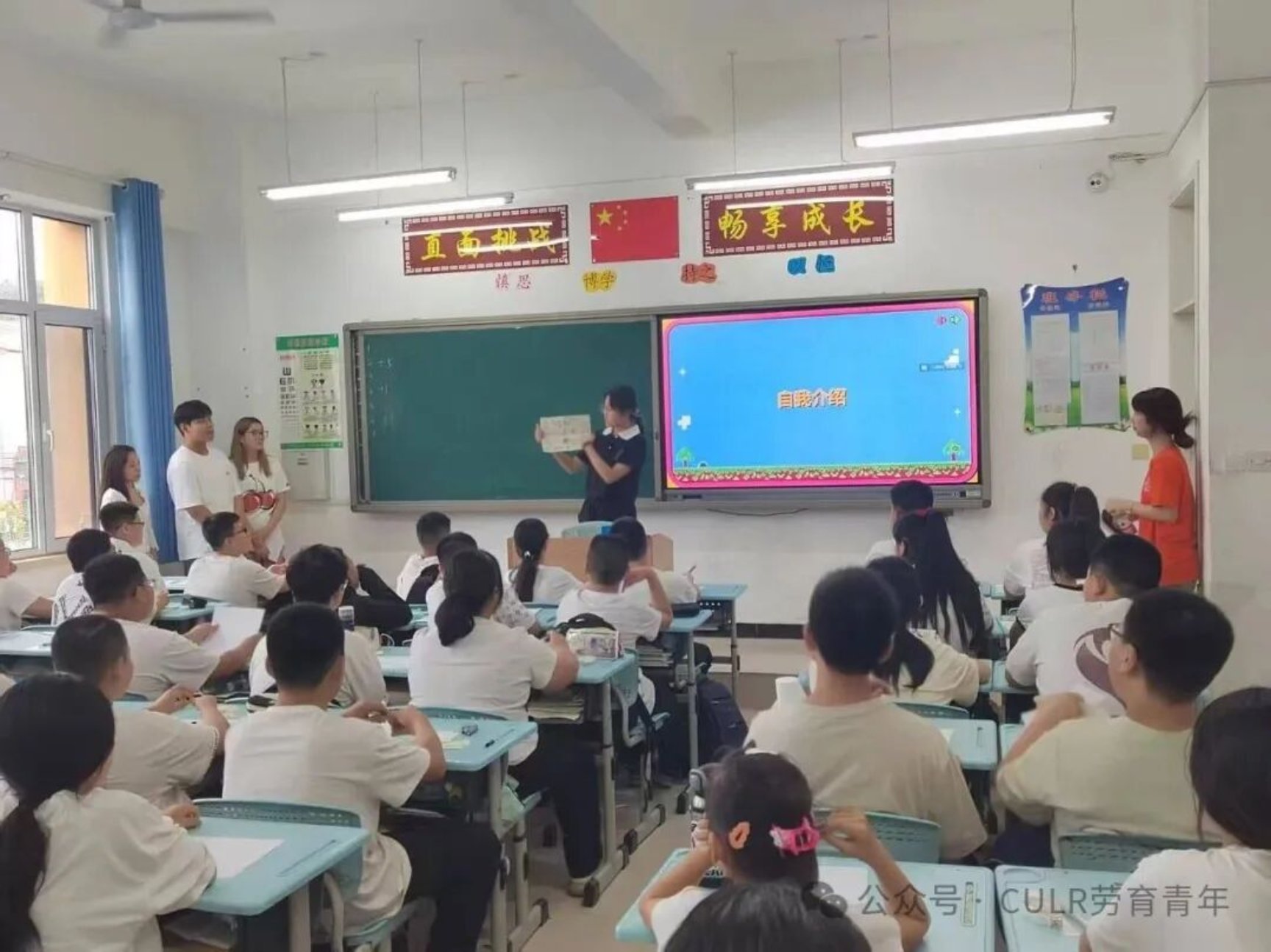 为确保课堂效果,2024级学子在前期筹备阶段便进行了细致分工,全员分为六个小组,围绕劳动主题设计了差异化见面会方案,通过多元形式激发初一学生的兴趣。其中,多个小组借助多媒体工具丰富课堂内容:有的播放精心剪辑的短视频介绍自己;有的制作图文并茂的PPT讲解劳动知识。另有小组以游戏互动为切入点,设计了“谁是卧底”“你画我猜”等趣味环节,在欢声笑语中掌握了劳动知识与技能。课堂上,劳育学子化身“小老师”,耐心讲解、细致示范,初一学生们则积极举手、踊跃尝试,欢声笑语与专注思考交织,让劳动教育的种子在轻松的氛围中悄然萌芽。
