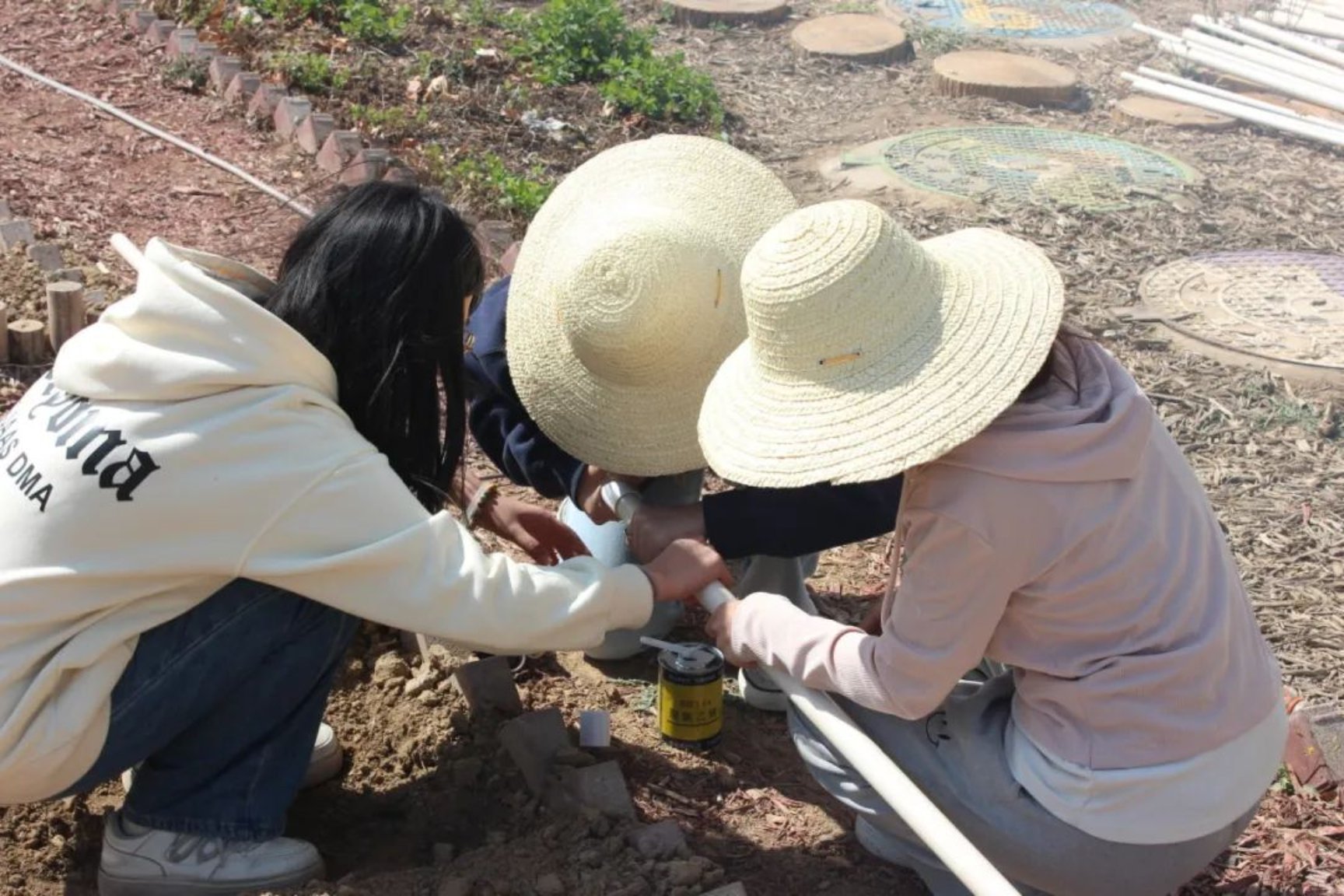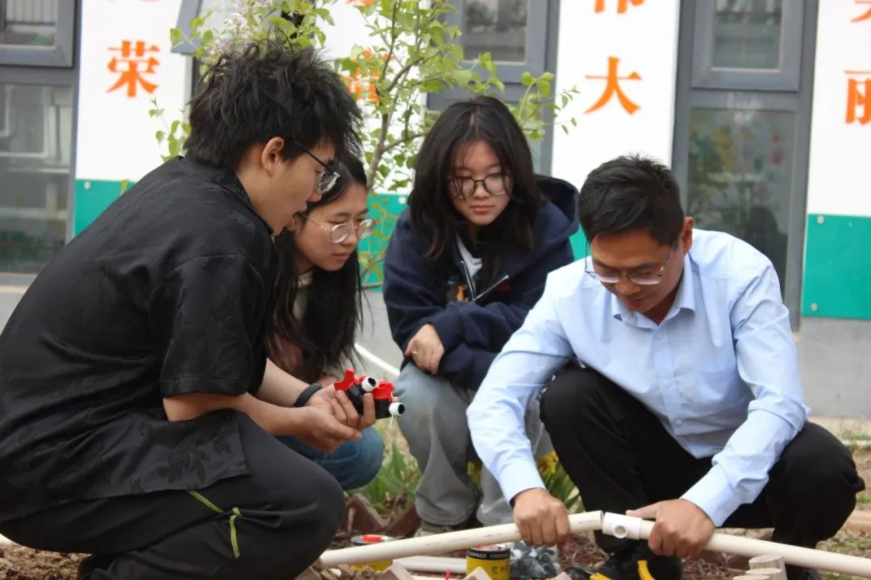 在学习了解智能灌溉系统理论知识之后,全体2023级同学在宁爱国博士、后勤处老师、学院老师的指导下分组行动。搬运组的同学们根据各种植区的管道材料需求进行精准配备;铺设组的同学则全神贯注地铺设管道,认真测量、调整角度,力求精准无误;学校后勤处工作人员积极协调资源,及时解决现场问题,保障智能灌溉系统建设升级的顺利推进。在所有管道系统铺设完成后,后勤处老师带领同学们进行通电试水完成验收,目前耕读小院的智能灌溉系统已经完成全面的建设升级并已投入正常使用。