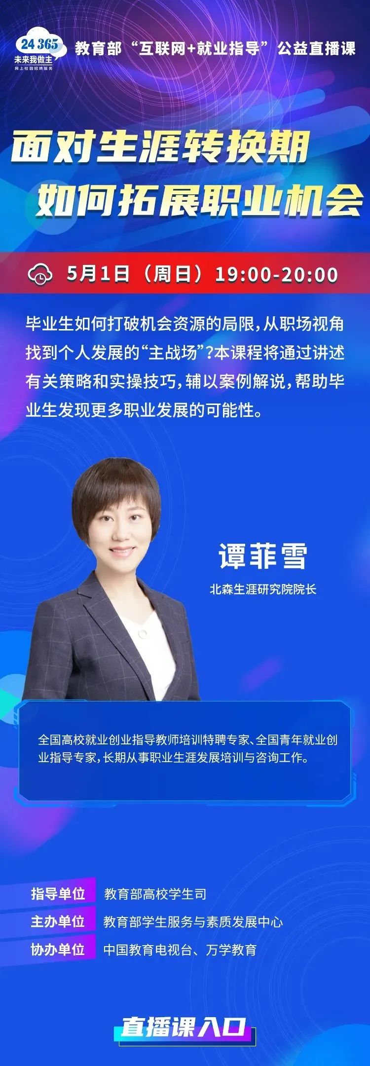 课程预告 | 教育部24365就业公益直播课:面对生涯转换期 如何拓展职业机会