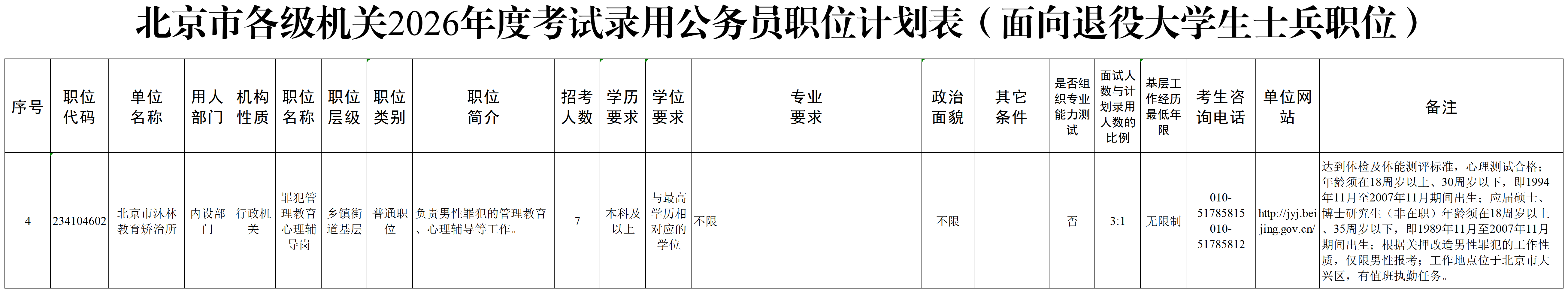 6.面向服务基层项目人员的招考职位,限于截至报名时在岗,2026年合同期满的北京市乡村振兴协理员等本市服务基层项目人员报考。