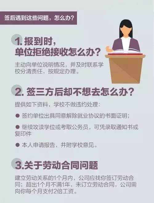 随着春招逐渐进入尾声,毕业生将面临签三方、落实合同、处理档案等问题。提醒大家签约要慎重,千万别大意!毕业流程有哪些?签三方要注意什么?哪些合同要慎签?档案如何处理?签了三方不想去怎么办?……史上最全签约秘笈↓↓↓给求职的你!