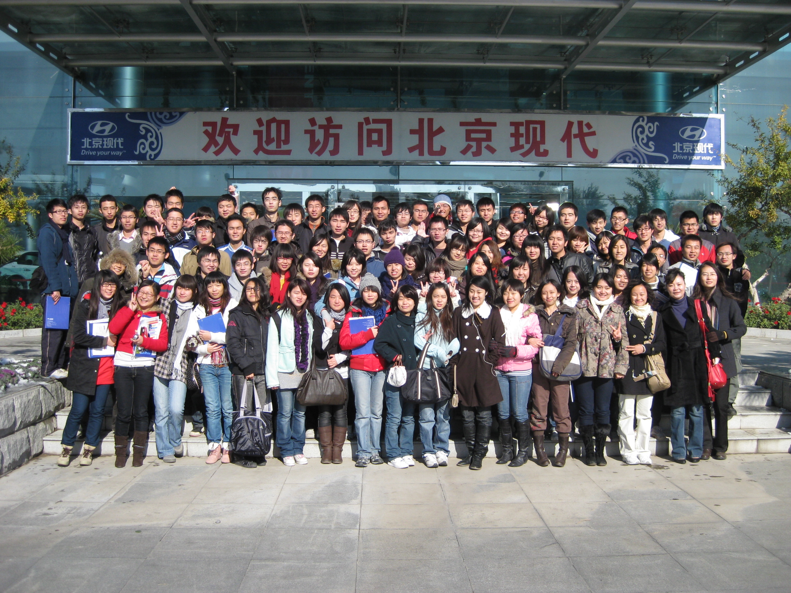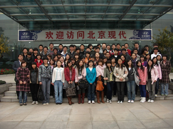 负责本次接待任务的公关部导游让我们了解到了北京现代汽车的企业文化,并且参观了第一工厂的生产流程。通过此次参观我们认识到,北京现代在秉承“追求卓越品质,创造幸福生活”的宗旨下不断追求自主创新,而严格的管理流程和高标准的物流要求是北京现代高效率的坚实保证。在参观过程中,同学们积极思考,踊跃提问。作为中外合资的代表企业,北京现代正以“奋力拼搏,团结协作,知难而进,志在必得”的现代汽车精神,走中国新型工业化道路,向着“兴北京工业,创现代辉煌”的目标大步迈进。深入一线的参观学习,使同学们更加认识到知识的力量,现代化的企业更需要先进的管理机制和理念。此次参观活动为实践周计划画上了圆满的句号。