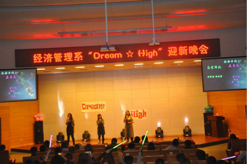 2014年11月3日晚七点,中国劳动关系学院经济管理系“dream&high梦幻之夜”迎新晚会于我校涿州校区报告厅魅力上演,报告厅内灯光炫目,新老生共聚一堂,更有老师们亲临现场观赏同学们精彩纷呈的节目。