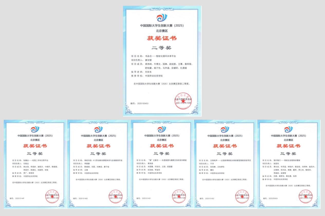近日,北京市教育委员会公布2025年中国国际大学生创新大赛北京赛区获奖名单。我校共有6支学生团队的创新项目脱颖而出,荣获多项奖项,展现出中劳学子出色的创新创业能力。