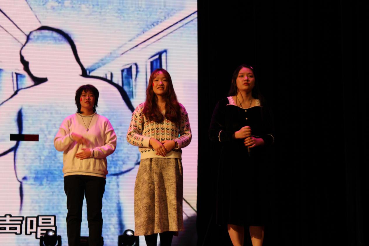 由文艺复兴乐队带来的开场歌曲《得不到的mojito爱人》带领在场的老师和同学们漫步经典,畅享新声。她们带来的自创曲《午夜飞驰》将晚会的热情点燃,收获了阵阵掌声。