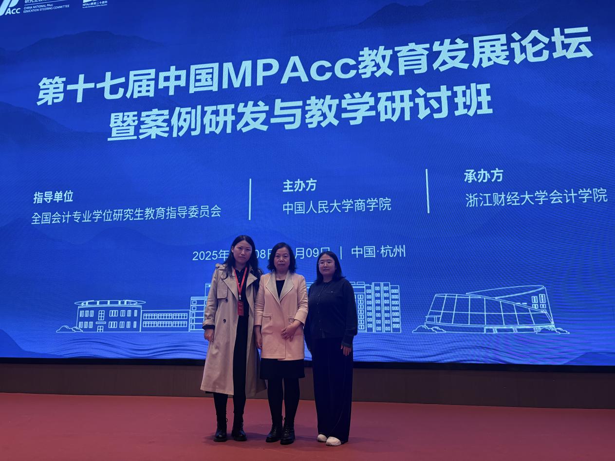 劳动经济学院教学副院长韩文琰、财务管理系青年教师谭超、孙晓阳参加了由中国人民大学商学院主办,浙江财经大学会计学院承办的第十七届中国MPAcc教育发展论坛暨案例研究与教学研讨班,本次会议于11月8日至9日在杭州举行。论坛聚焦案例研发与教学核心议题,深入探讨案例建设对会计专业硕士点(MPAcc)建设的支撑作用,为专业硕士教育高质量发展凝聚智慧共识。
