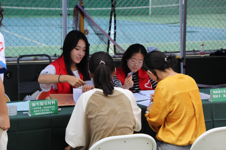 我们马院的志愿者驻扎在迎新的一线上。他们在迎新当天,早早提前到岗,分工明确、各司其职。有的引导新生前往报到处,办理入学前的工作事宜,答疑解惑;有的则帮助新生们解决宿舍和校园生活问题;有的负责带领新生参观校园环境,提前适应美好的大学生活。学院志愿者们成了迎新现场一道亮丽的风景线。