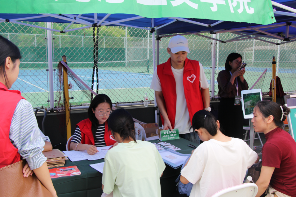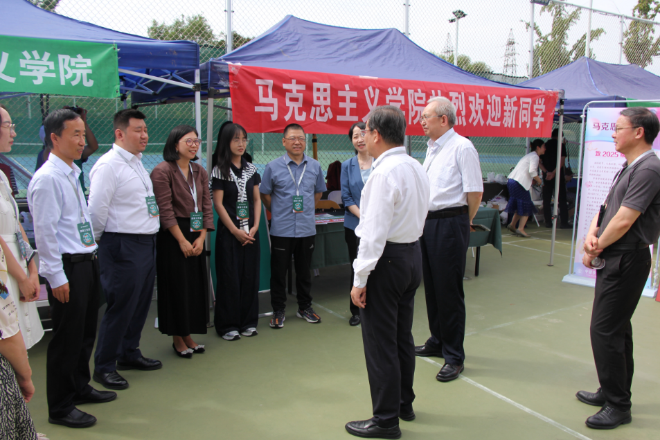 学校党委书记刘向兵,校长、党委副书记傅德印,党委常委、副校长吴万雄,党委常委、副校长李珂,党委常委、涿州校区管理办公室主任李东等校领导亲临迎新现场,亲切慰问我院一线工作人员和志愿者团队。我院院长许涛、党总支书记彭帅、科研副院长王多吉、教学副院长孙伟正、思想政治教育系主任黄帅、教研室主任田守雷、谭丙华、2025级新生兼职班主任郭相茹、教学秘书朱程程,行政秘书何星男,专职辅导员邹萍萍和王云龙在迎新点全程驻守,以饱满热情的状态迎接新生和家长。他们围绕学院整体情况、专业发展、就业去向等方面和家长进行了沟通和交流,鼓励新生要尽快适应大学生活,全面发展。