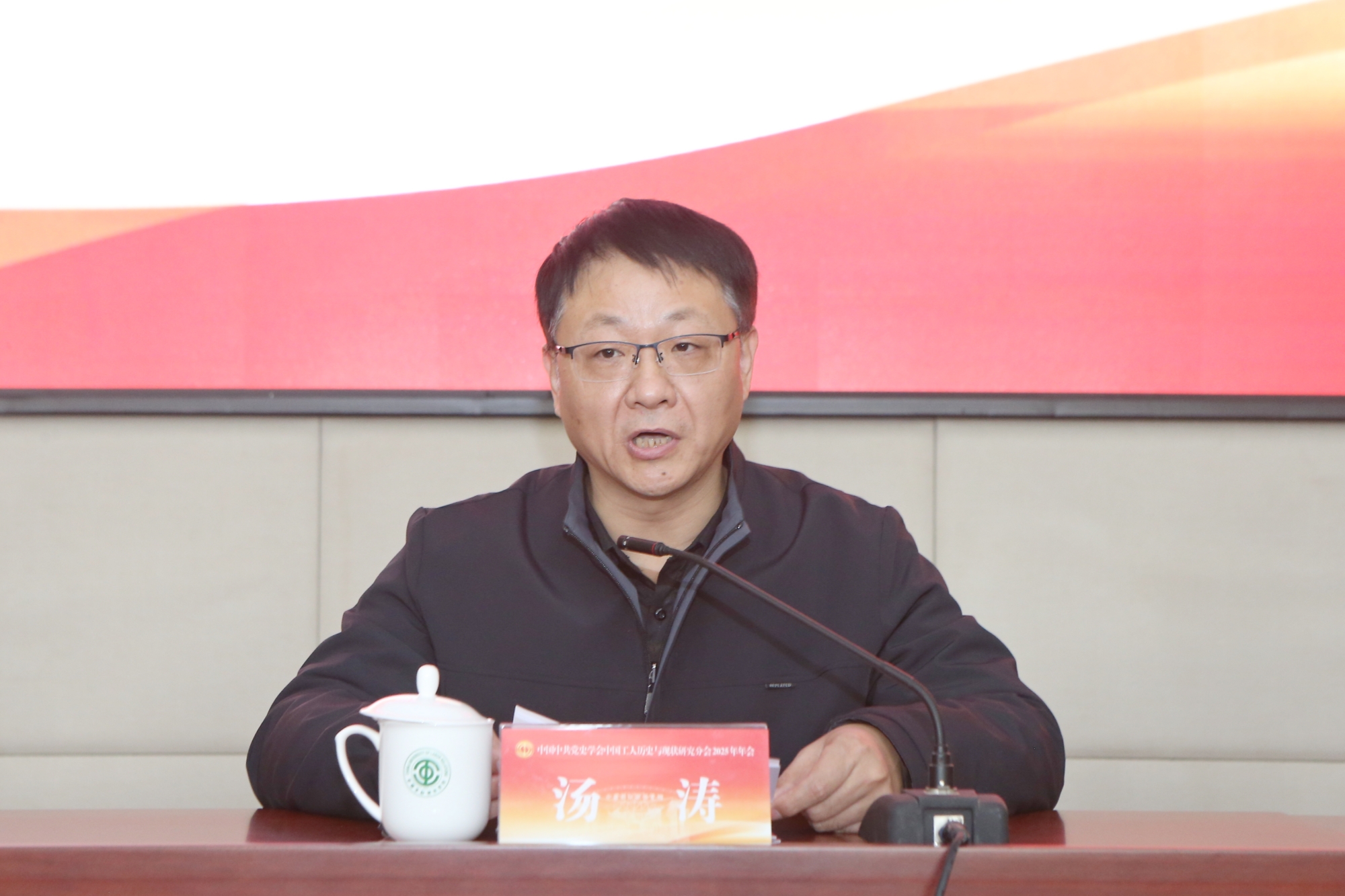 开幕式上,汤涛代表中国中共党史学会,向本次年会的召开表示热烈祝贺,向长期深耕中国工人历史与现状研究领域的专家学者、一线工会工作者致以诚挚问候。他指出,中国工人历史与现状研究分会作为聚焦工运史与工会理论研究的重要平台,始终坚守马克思主义历史观与方法论,立足党的工运事业发展大局,推出了一系列兼具史料价值与实践意义的研究成果,为深化中共党史研究、传承工人阶级红色基因提供了有力支撑。他强调,分会要深刻把握历史主动,从中国工人运动百年历程中挖掘精神财富,筑牢信仰根基;始终坚持守正创新,在服务大局中彰显时代价值,围绕产业工人队伍建设改革、新就业形态劳动者权益保障等现实课题深化研究,将理论成果转化为服务工运事业的实践动能;着力深化规律阐释,在理论建构中贡献学术智慧,构建中国特色工运研究的学科体系、学术体系、话语体系;扩大学术交流,促进学科发展,加强跨领域协作与青年人才培育,推动中国工人历史与现状研究迈上新台阶。