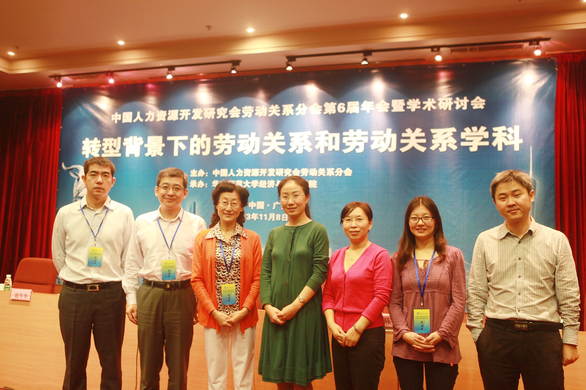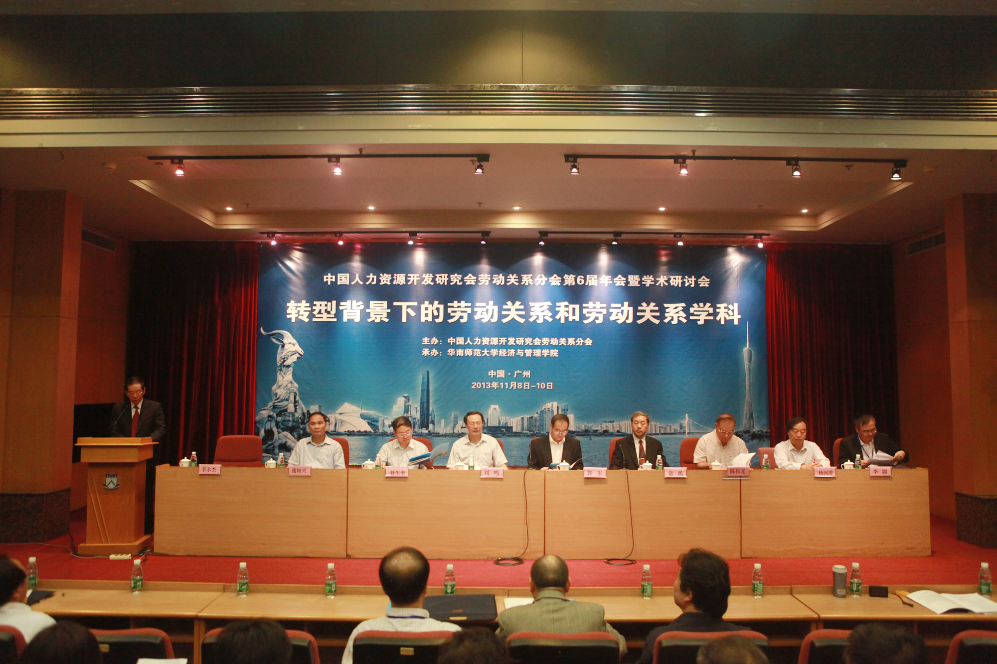 2013年11月9 -10日“中国人力资源开发研究会劳动关系分会第6届年会暨学术研讨会”在广东华南师范大学举行,本次会议的主题为“转型背景下的劳动关系和劳动关系学科”。来自全国74所高校和科研机构的157名代表参加本届年会。