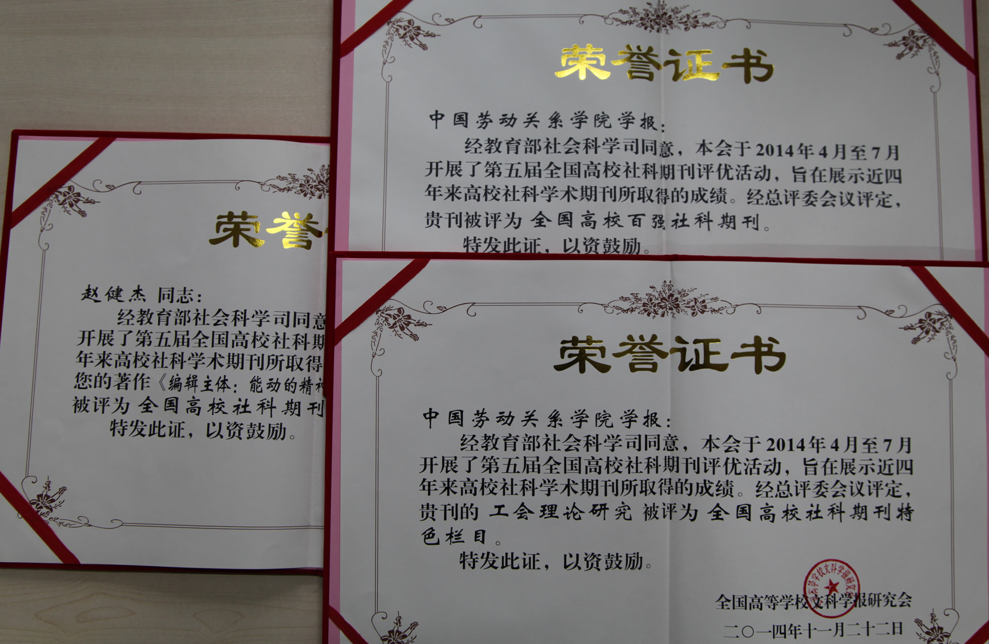 我校学报经总评委会议评定,连续五次被评为“全国高校百强社科期刊”;学报“工会理论研究”栏目被评为“全国高校社科期刊特色栏目”;学报总编辑赵健杰所著《编辑主体:能动的精神生产者——学报编辑主体性研究》的编辑学专著,被评为“全国高校社科期刊优秀编辑学论著”。