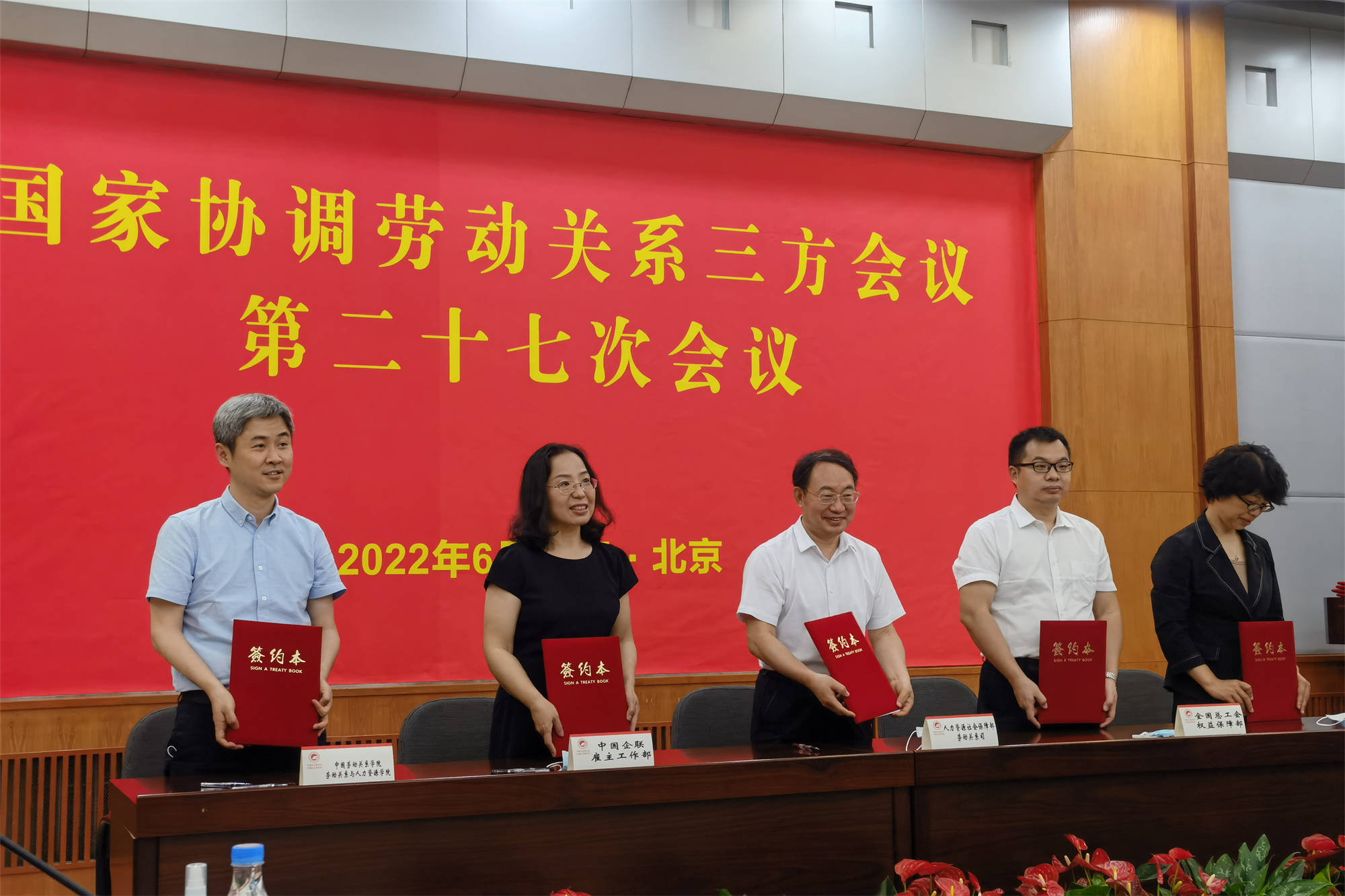6月17日,国家协调劳动关系三方会议第二十七次会议在北京召开。会议总结了2021年国家三方会议工作,分析研判形势,部署2022年工作任务,并审议了有关文件。人力资源和社会保障部、全国总工会、中国企联、全国工商联有关负责同志出席会议并讲话。