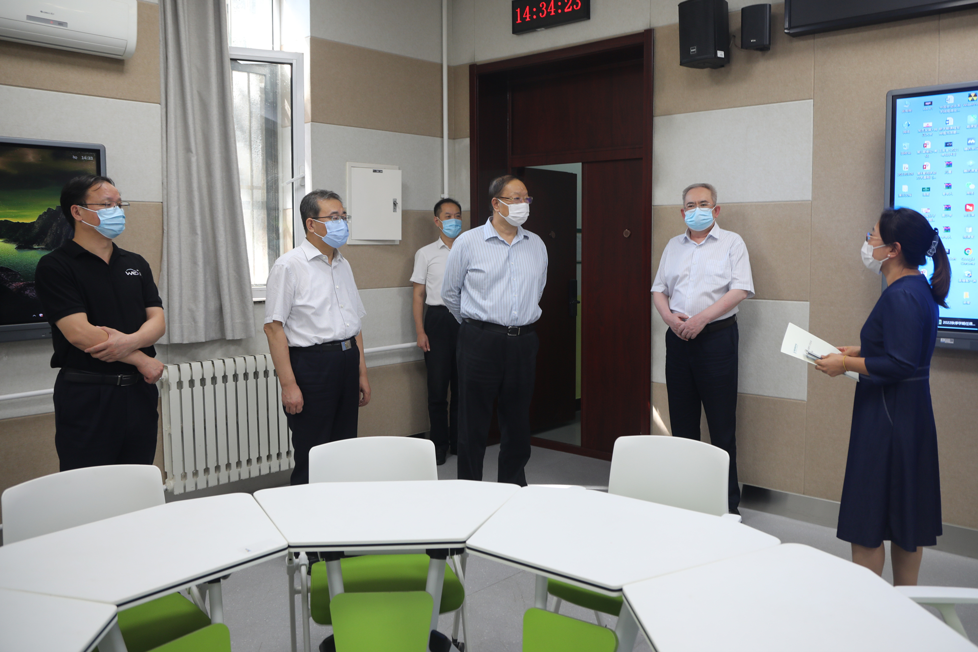 李晓钟主任走进学生食堂、健康观察点等重点区域,认真查看了疫情防控措施落实情况,详细询问了师生住宿生活条件、秋季学期学生返校工作准备和迎新工作筹备等具体情况,并来到教学楼教室现场,听取了学校线上教学工作安排汇报。随后,李晓钟主任召集学校领导班子在唯实楼308会议室举行座谈会。